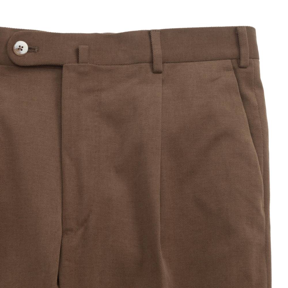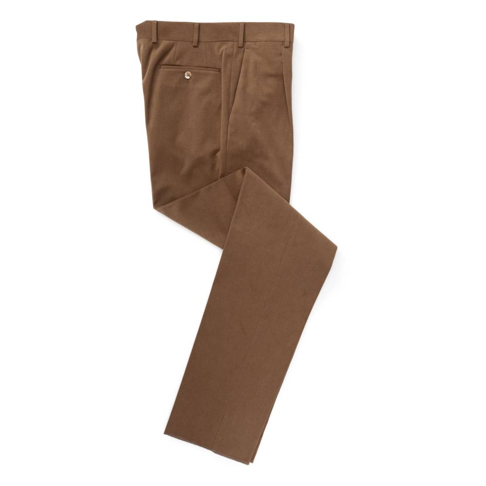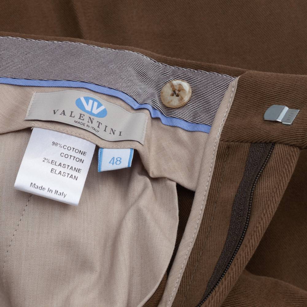 Классические мужские брюки итальянского бренда Valentini. Полностью изготовлены в Италии из прочного начёсанного хлопкового твила (Brushed Twill) с эластаном коричневого цвета. Плотная ткань весом 430 г отлично пропускает воздух и сохраняет тепло, идеальна для осени, мягкой зимы и весны. Выполнены в слегка зауженном книзу крое и дополнены одиночной складкой (защипом) для дополнительного комфорта. Модель имеет среднюю посадку. Низ брюк необработан (unhemmed) признак портновского класса (Sartorial), позволяющий адаптировать длину под ваш рост, выбрав классические манжеты или подгиб. Модель оснащена классическими петлями для ремня. Специальная маленькая петля (The Prong Keeper) над ширинкой предназначена для фиксации язычка (пряжки) ремня по центру пояса, обеспечивая максимально аккуратный внешний вид. Брюки застегиваются на молнию и пуговицы, имеют два боковых кармана и два сзади.