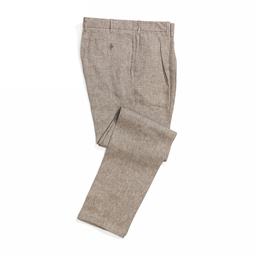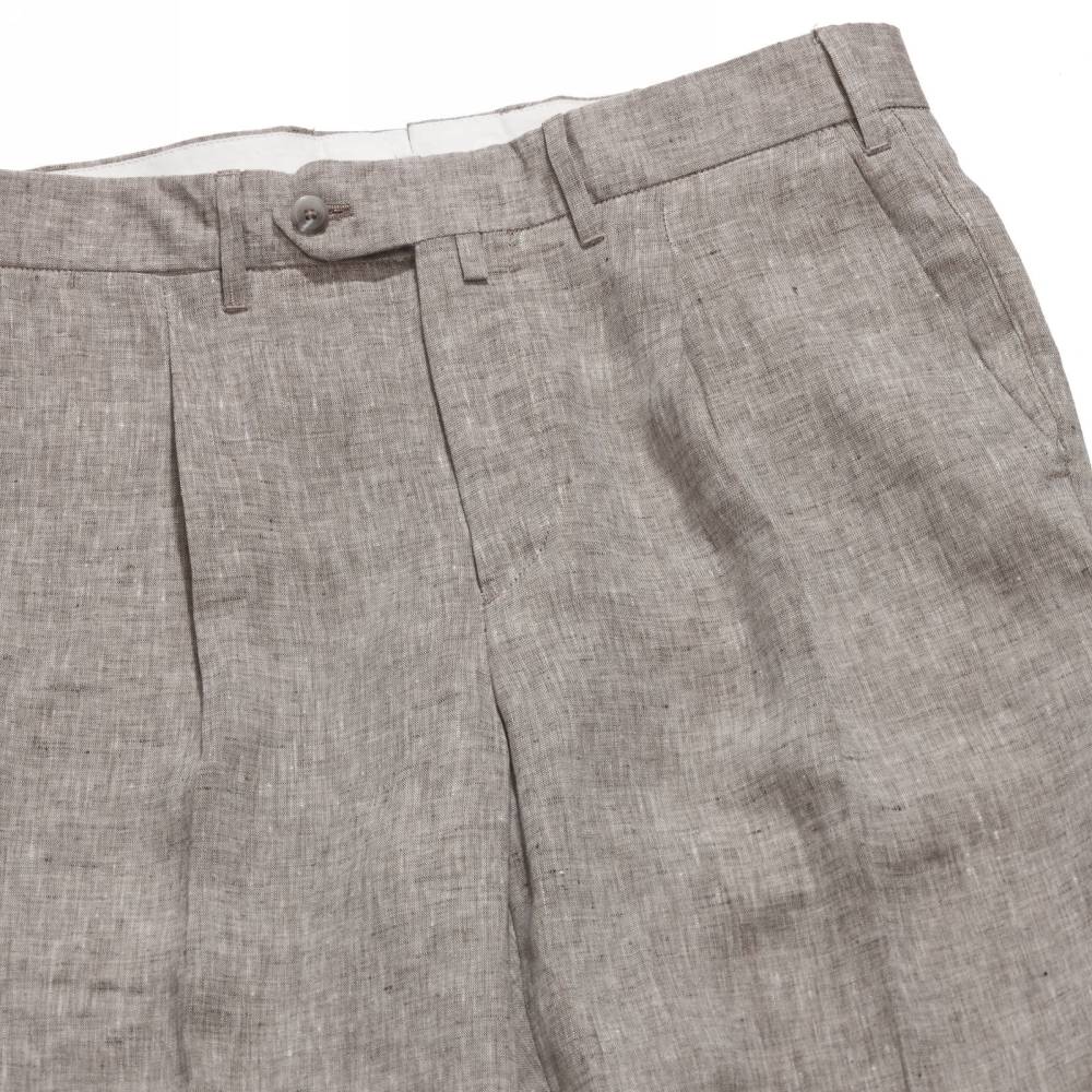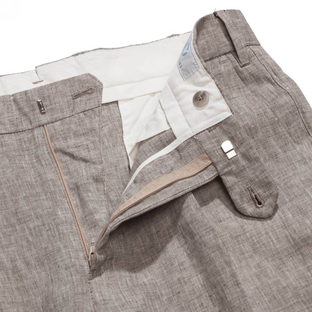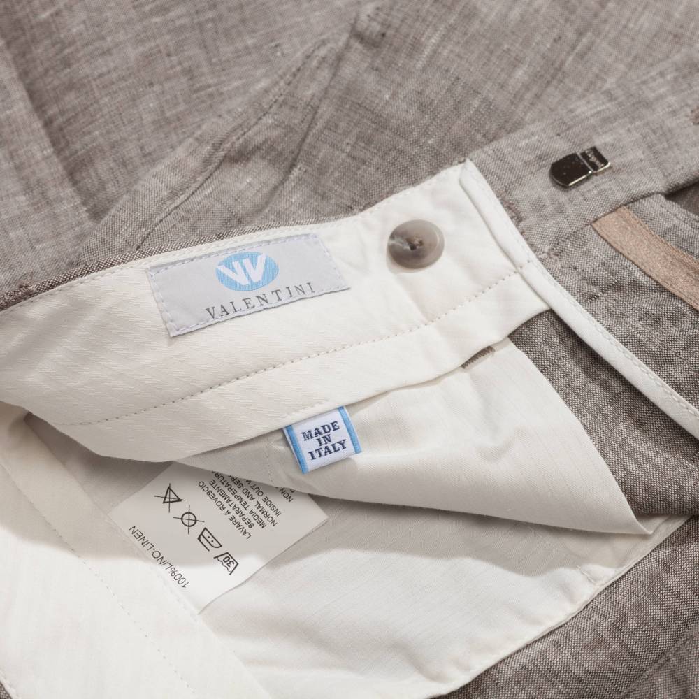 Лёгкие летние мужские брюки Valentini с защипами на талии. Модель свободного силуэта, но штанины чуть сужаются к щиколотке. Выполнена из 100% льняной ткани (вес ткани 240 г) серого цвета. Конструкция пояса создана под ремень. Брюки застёгиваются на молнию и пуговицы. Два кармана по бокам и два сзади. Средняя посадка в талии. Стандартная длина брюк рассчитана на высокий рост, но сохраняется возможность для укорачивания.