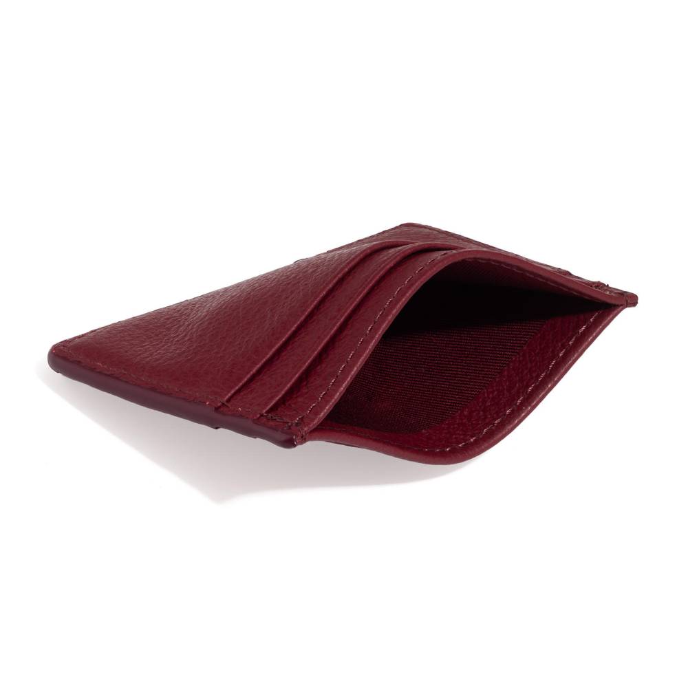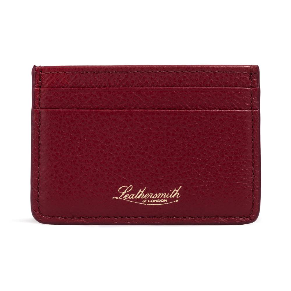 Классический двухсторонний чехол для банковских карт от английской мануфактуры Leathersmith of London. Изготовлен из натуральной зернистой телячьей кожей Rutland бордового цвета, дополнен хлопковой подкладкой внутри. Чехол оснащен четырьмя карманами для карт (по два с каждой стороны), а также одним удобным открытым карманом по центру.