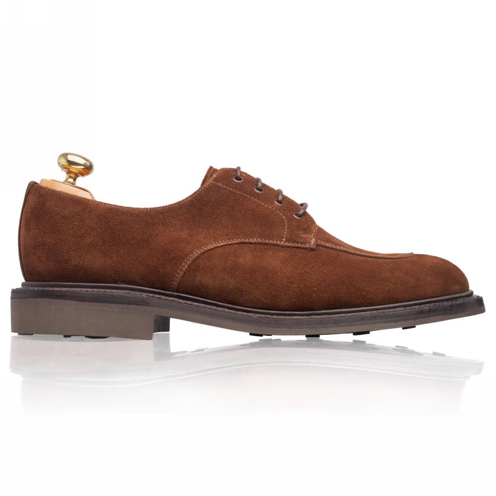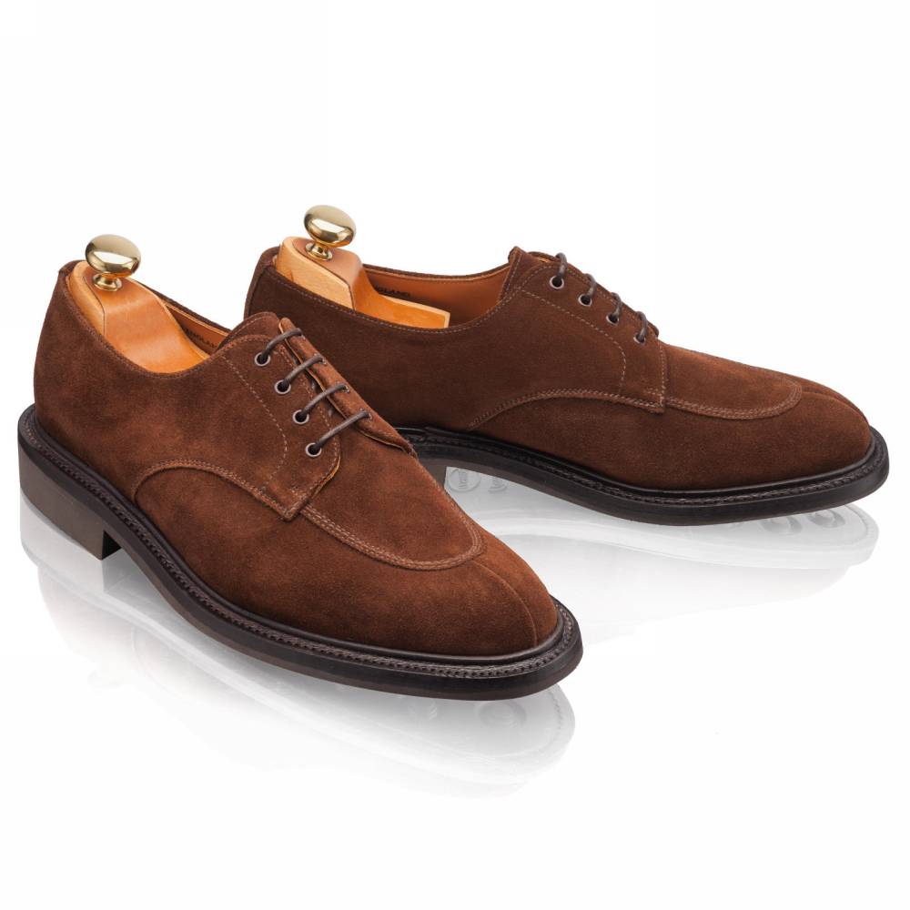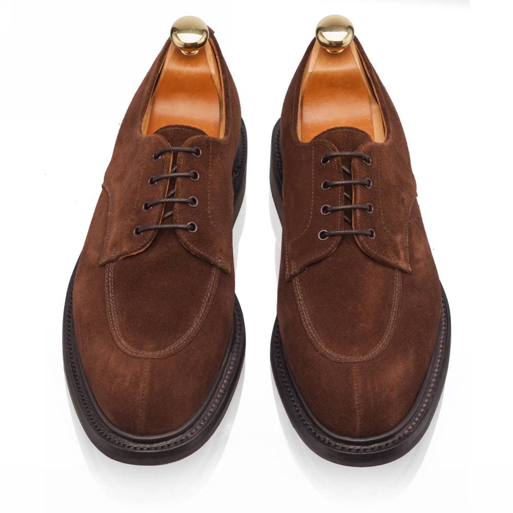 Дерби Artisan в норвежском стиле выполнены из качественной ворсистой замши британской дубильни Charles F. Stead. Подкладка из кожи растительного дубления. Модель имеет усиленный рант с окантовкой, который добавляет подошве дополнительную защиту от влаги. Пара оснащена резиновой подошвой Itshide с неглубоким протектором. Конструкция Goodyear Welted.