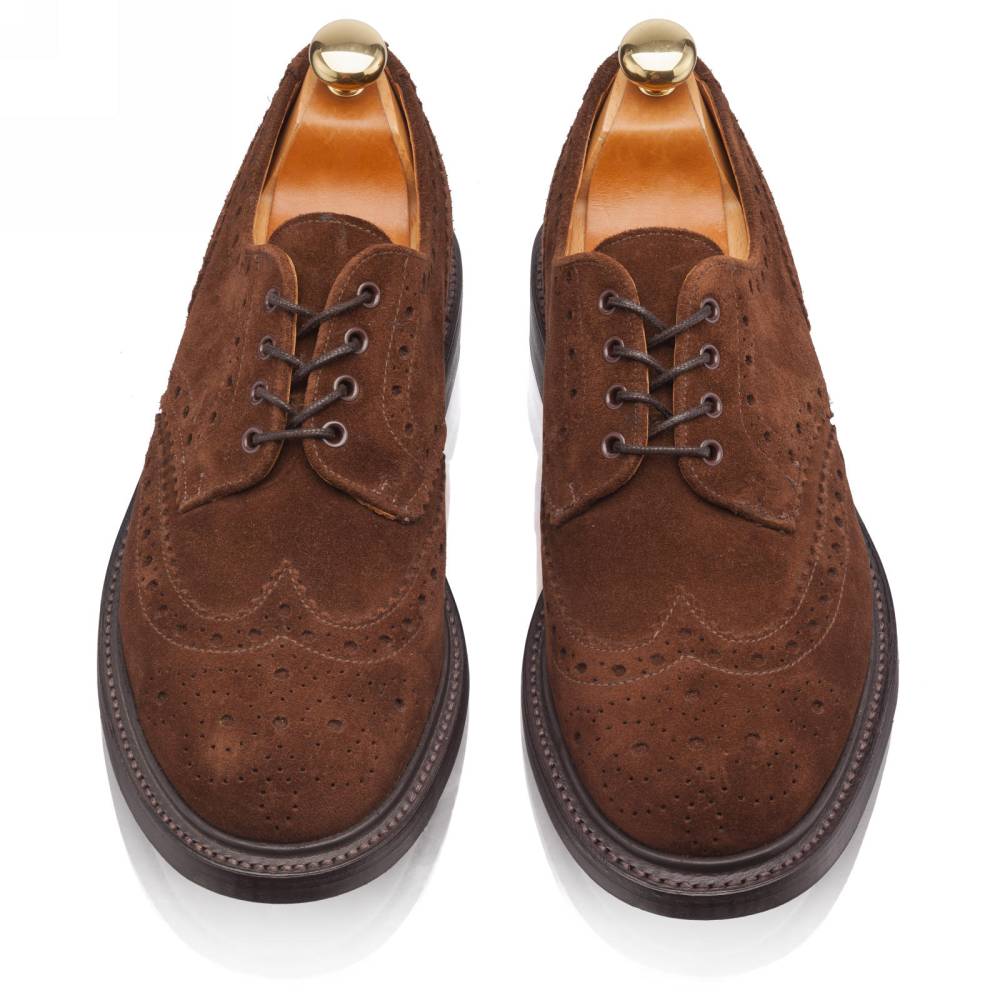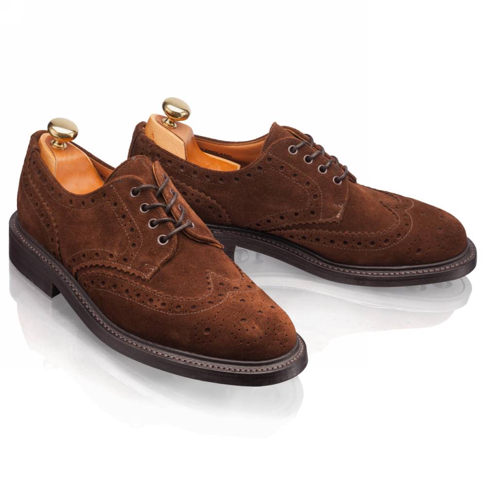 Броги коричневого цвета Artisan выполнены из качественной ворсистой замши британской дубильни Charles F. Stead. Подкладка из кожи растительного дубления. Модель имеет усиленный рант с окантовкой, который добавляет подошве дополнительную защиту от влаги. Броги оснащены резиновой подошвой Itshide с неглубоким протектором. Конструкция Goodyear Welted.