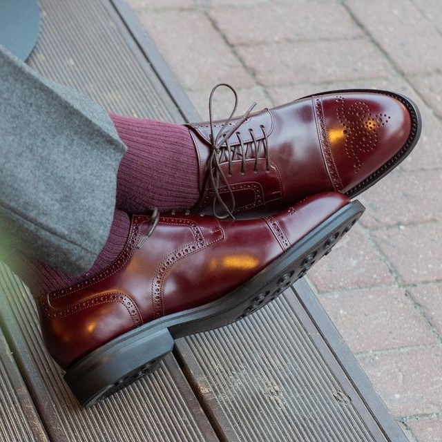 Неформальные дерби испанского бренда Artisan с ажурными узорами. Подходят для повседневного делового гардероба, а также стиля casual. Верх выполнен из плотной полированной кожи насыщенного бордового цвета. Внутри цельная стелька из тонкой мягкой кожи. Практичная резиновая подошва. Все строчки верха и швы ранта выполнены с особой аккуратностью, согласно философии бренда. Конструкция Goodyear Welted.