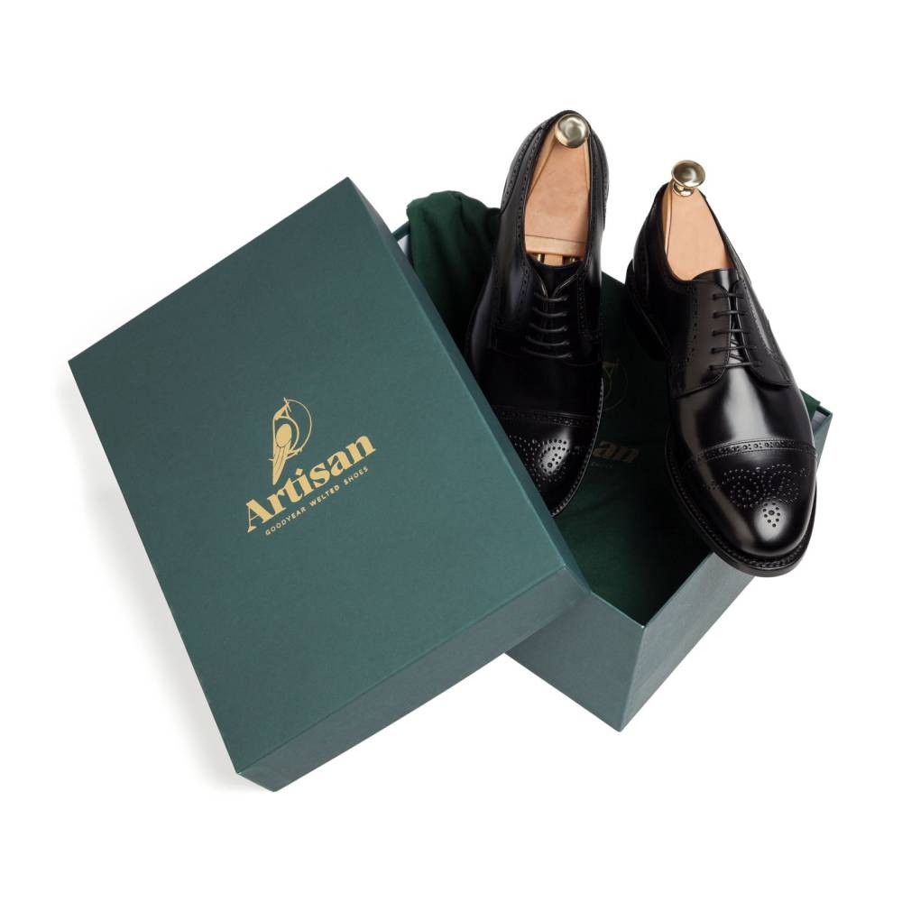 Неформальные дерби испанского бренда Artisan с ажурными узорами. Подходят для повседневного делового гардероба, а также стиля casual. Верх выполнен из плотной полированной кожи чёрного цвета. Внутри цельная стелька из тонкой мягкой кожи. Практичная подошва из кожи и резины. Все строчки верха и швы ранта выполнены с особой аккуратностью, согласно философии бренда. Конструкция Goodyear Welted.
