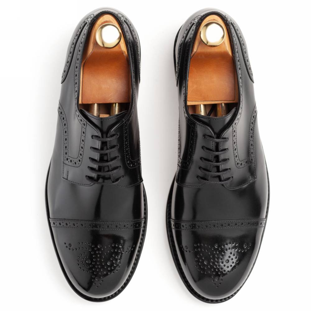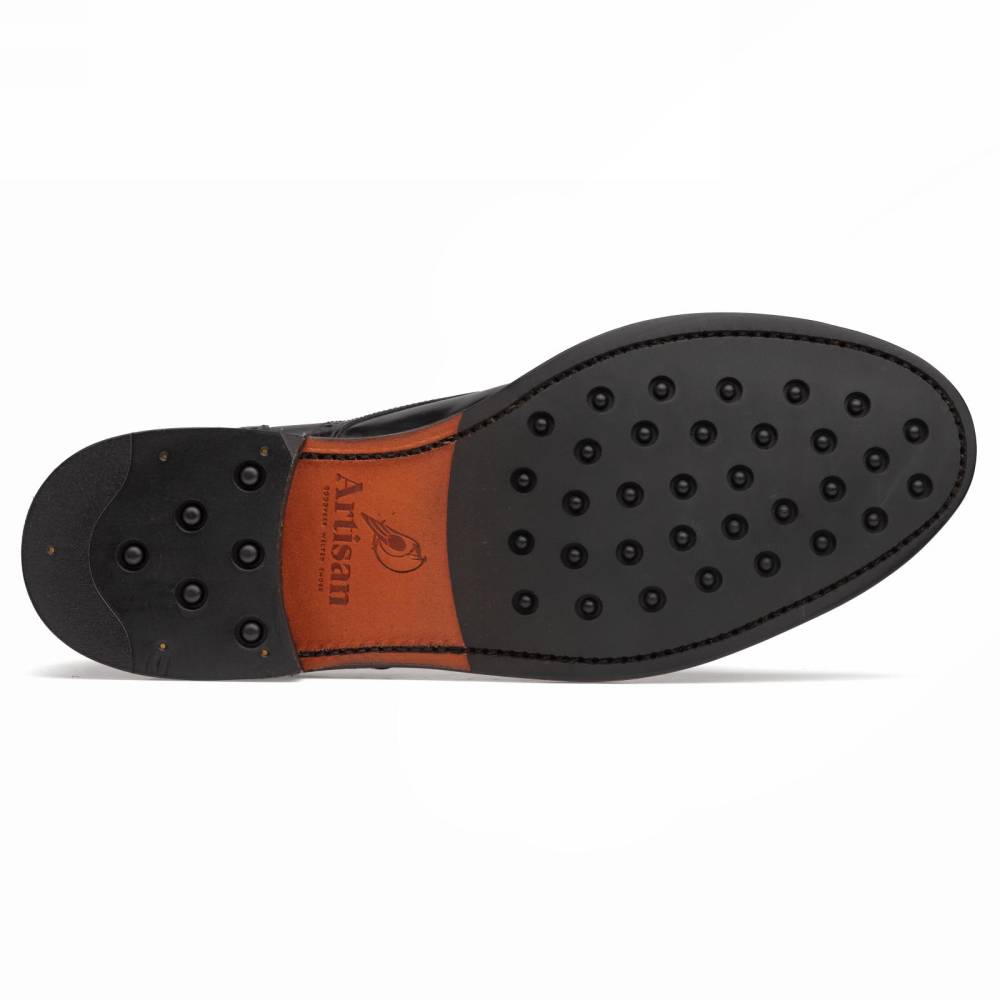 Неформальные дерби испанского бренда Artisan с ажурными узорами. Подходят для повседневного делового гардероба, а также стиля casual. Верх выполнен из плотной полированной кожи чёрного цвета. Внутри цельная стелька из тонкой мягкой кожи. Практичная подошва из кожи и резины. Конструкция Goodyear Welted.