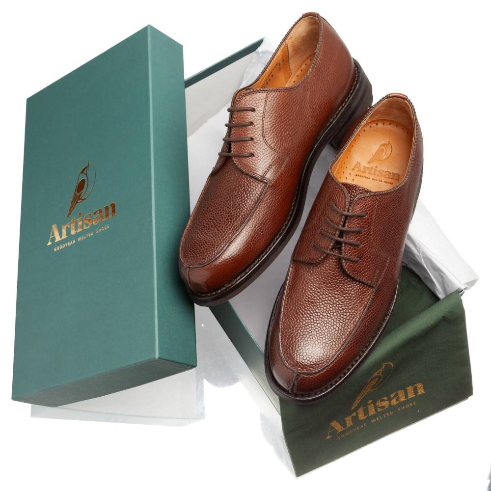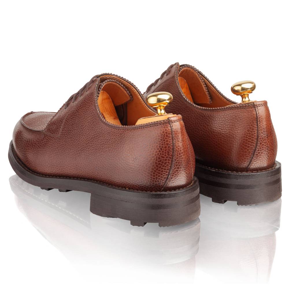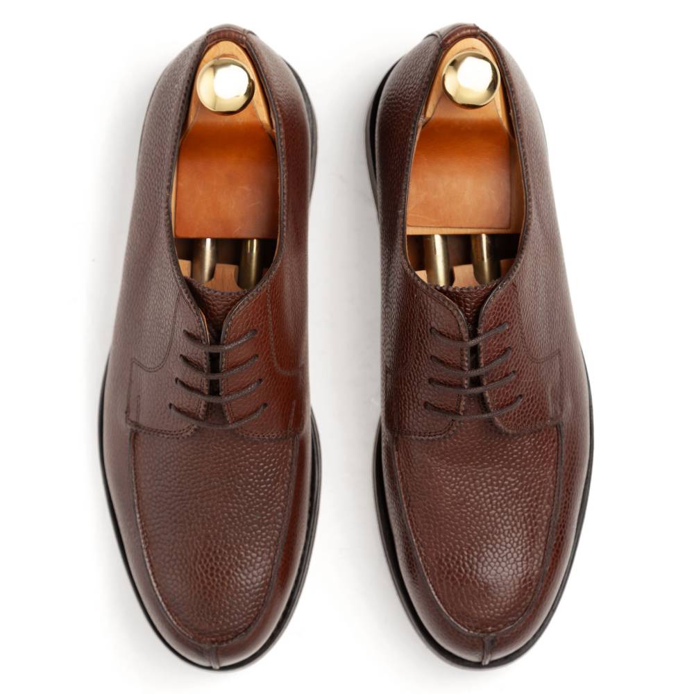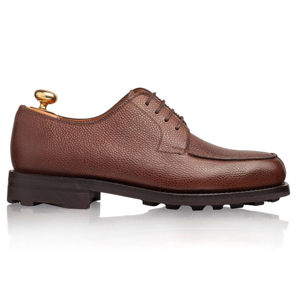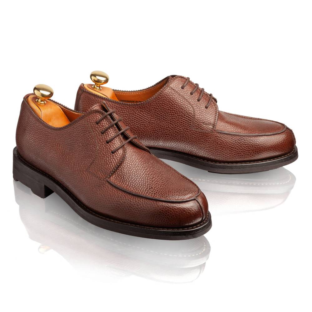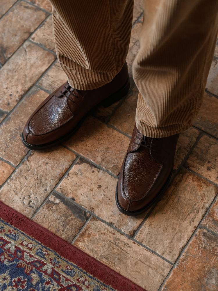 Дерби предназначены для осени и весны: они отлично подойдут для поездок за город, а также для ненастной погоды в городе. Эта модель сочетается с неформальным классическим гардеробом, брюками из тёплого твида и джинсами из плотного денима. Пара сшита на колодке с достаточно широкой полнотой (F+). Поэтому эти дерби могут подойти для широкой стопы с высоким подъёмом.