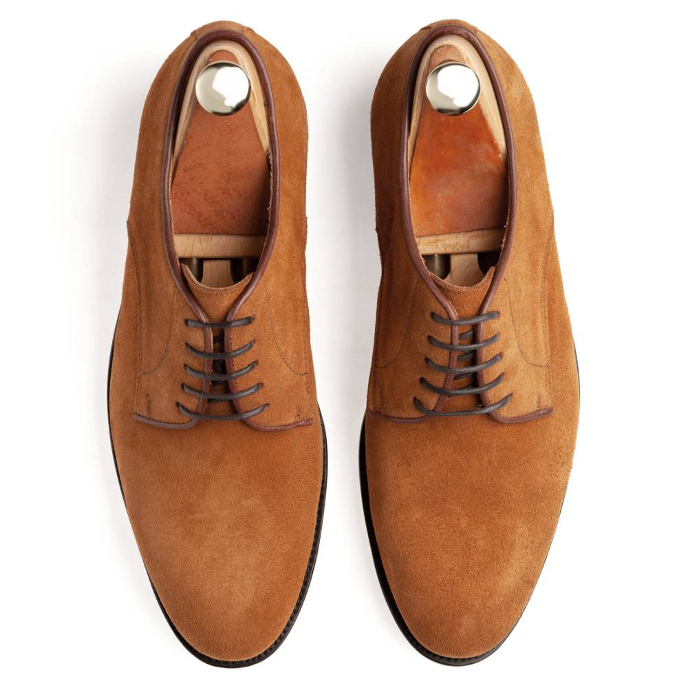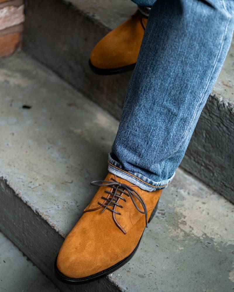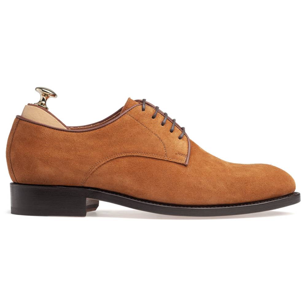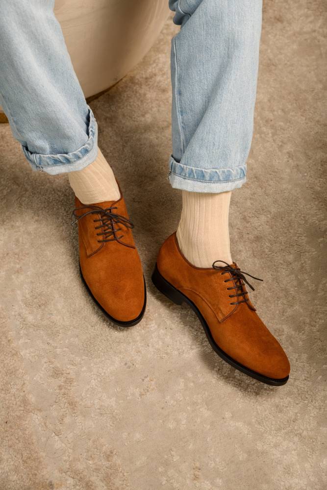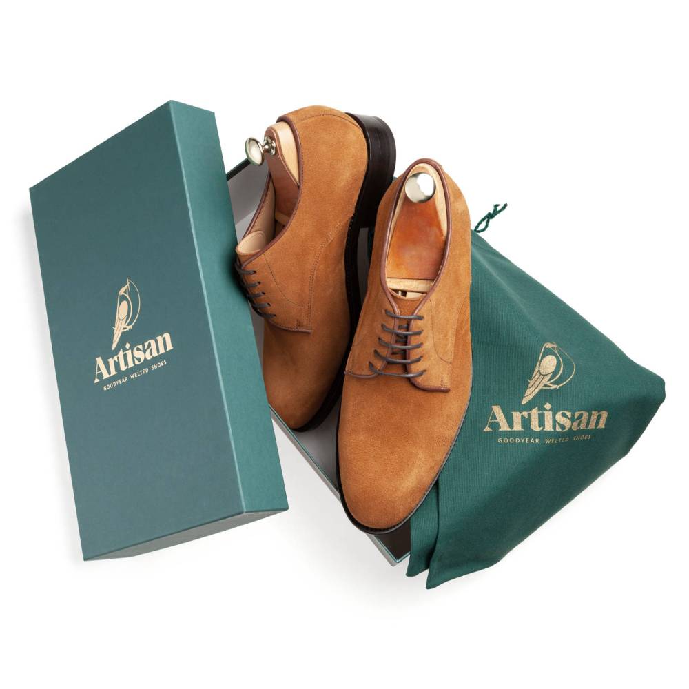 Лаконичные туфли-дерби Leipzig из коллекции бренда Artisan на кожаной подошве станут прекрасным выбором для сухой и тёплой погоды. Верх пары выполнен из мягкой приятной на ощупь замши коньячного цвета. Внутри подкладка из тонкой кожи растительного дубления. Туфли отлично сочетаются с лёгкими непарными пиджаками, хлопковыми или льняными брюками, лёгкими джинсами светлых оттенков, а также с чиносами.