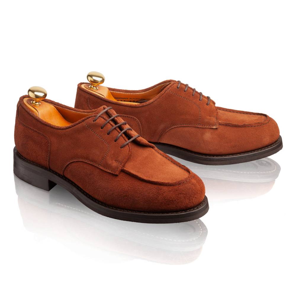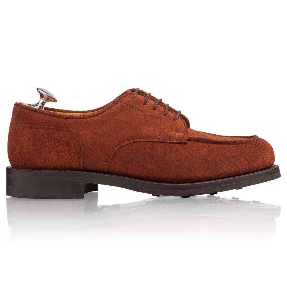Дерби предназначены для осени и весны: они отлично подойдут для поездок за город, а также для ненастной погоды в городе. Эта модель сочетается с неформальным классическим гардеробом, брюками из тёплого твида и джинсами из плотного денима. Пара сшита на колодке с достаточно широкой полнотой (F+). Поэтому эти дерби могут подойти для широкой стопы с высоким подъёмом.