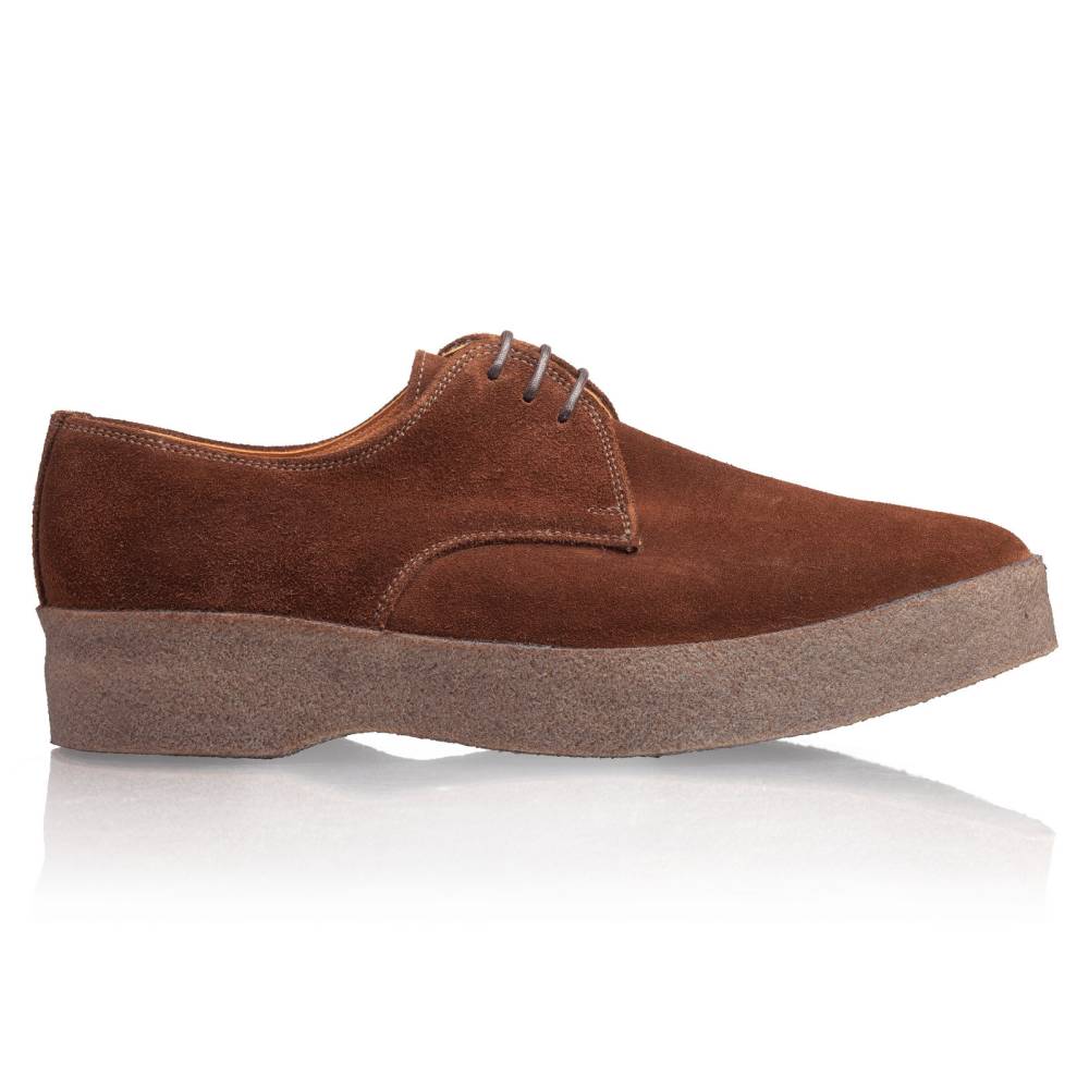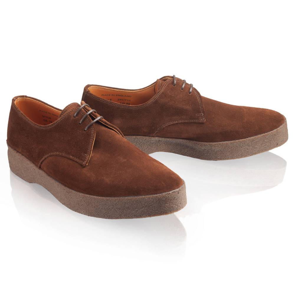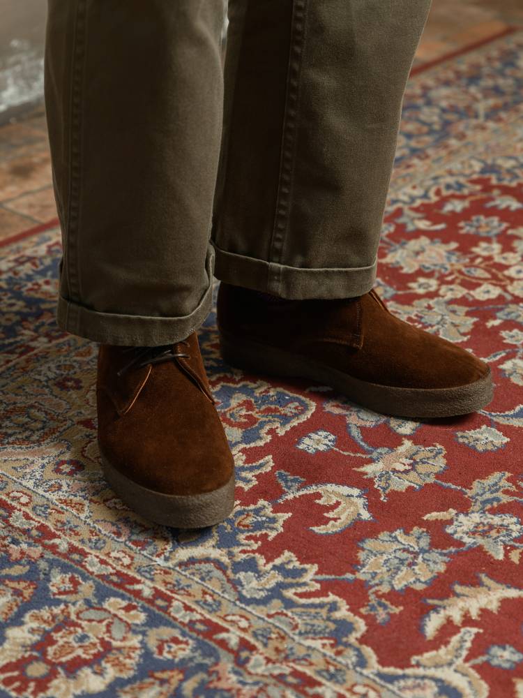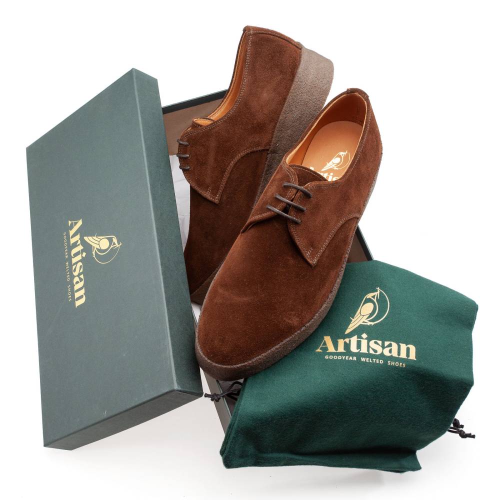 Artisan Steve Lo - низкий вариант культовой модели 70-х годов «Playboy Chukka». Отчасти модель стала знаменита благодаря голливудской звезде и гонщику Стиву МакКуину, который как в жизни, так и в кино щеголял в ней «не снимая». Очень мягкая и удобная обувь из коричневой замши с водоотталкивающей обработкой, поставляемой английской дубильней Charles F. Stead & Co. Внутри подкладка из тонкой телячьей кожи и цельная кожаная стелька. Особый комфорт доставляет массивная креповая подошва с отличными амортизирующими свойствами. Между подошвой и стелькой проложен слой из пробки, который со временем промнётся и примет форму стопы.