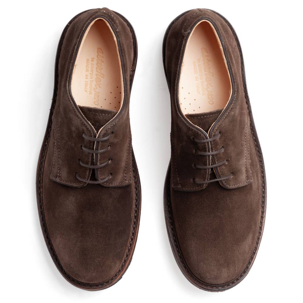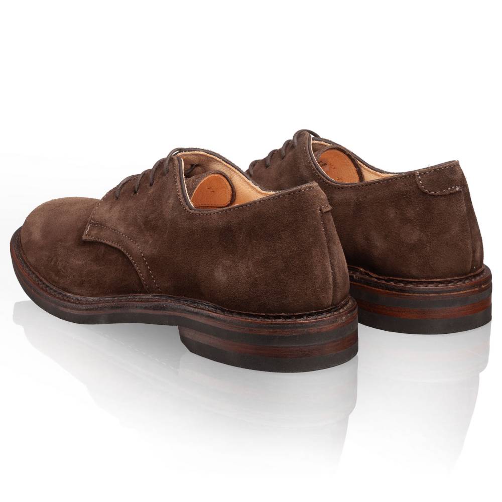 Удобные лаконичные дерби Redflex итальянского бренда Astorflex для весны и осени. Верх выполнен из тосканской замши тёмно-коричневого цвета. Внутренняя отделка из гипоаллергенной кожи растительного дубления. Модель имеет мягкую съёмную стельку из кожи и пены с эффектом памяти (memory foam). Дерби оснащены практичной резиновой подошвой с неглубоким протектором. Верх подошвы по всей окружности дополнен штормовым рантом, который обеспечивает защиту от влаги.