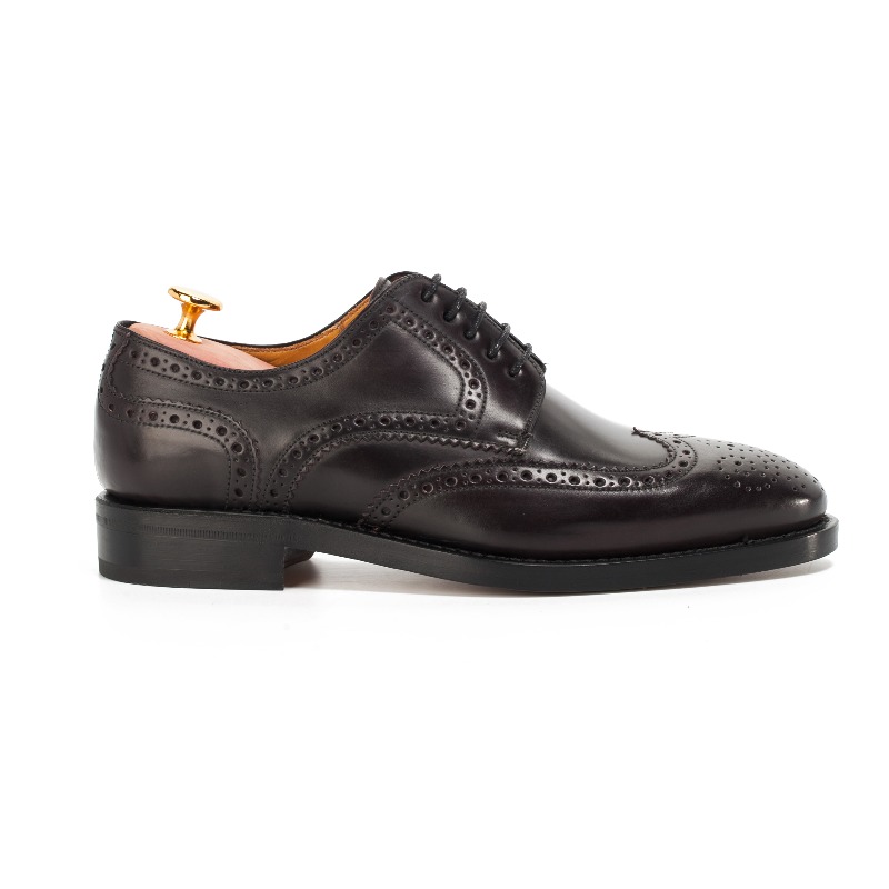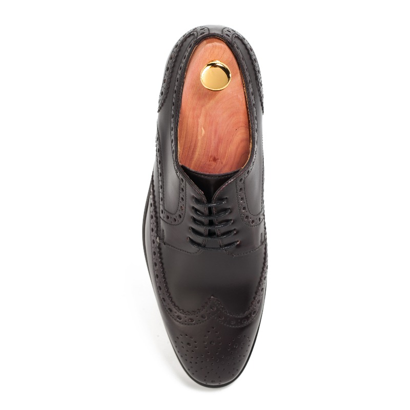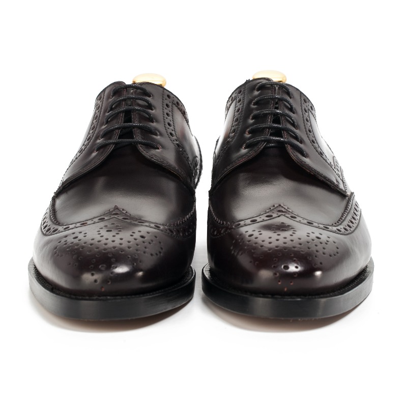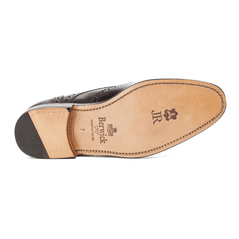 Классические мужские броги Berwick выполнены из ценной лошадиной кожи тёмно-бордового цвета. Кожа этого животного является редким и изысканным материалом, не похожим на другие. Не будучи пористой, она содержит натуральные масла и жиры, которые впитываются в течение различных фаз дубления, придавая натуральный блеск, гибкость и прочность каждому изделию. Уход за данным материалом также принципиально отличается. Модель украшена традиционным перфорированным узором и фестонами. Внутренняя отделка из нежной кожи горчичного оттенка. В конструкции данной модели используется подошва легендарной кожевенной мастерской Joh. Rendenbach. Конструкция Goodyear.