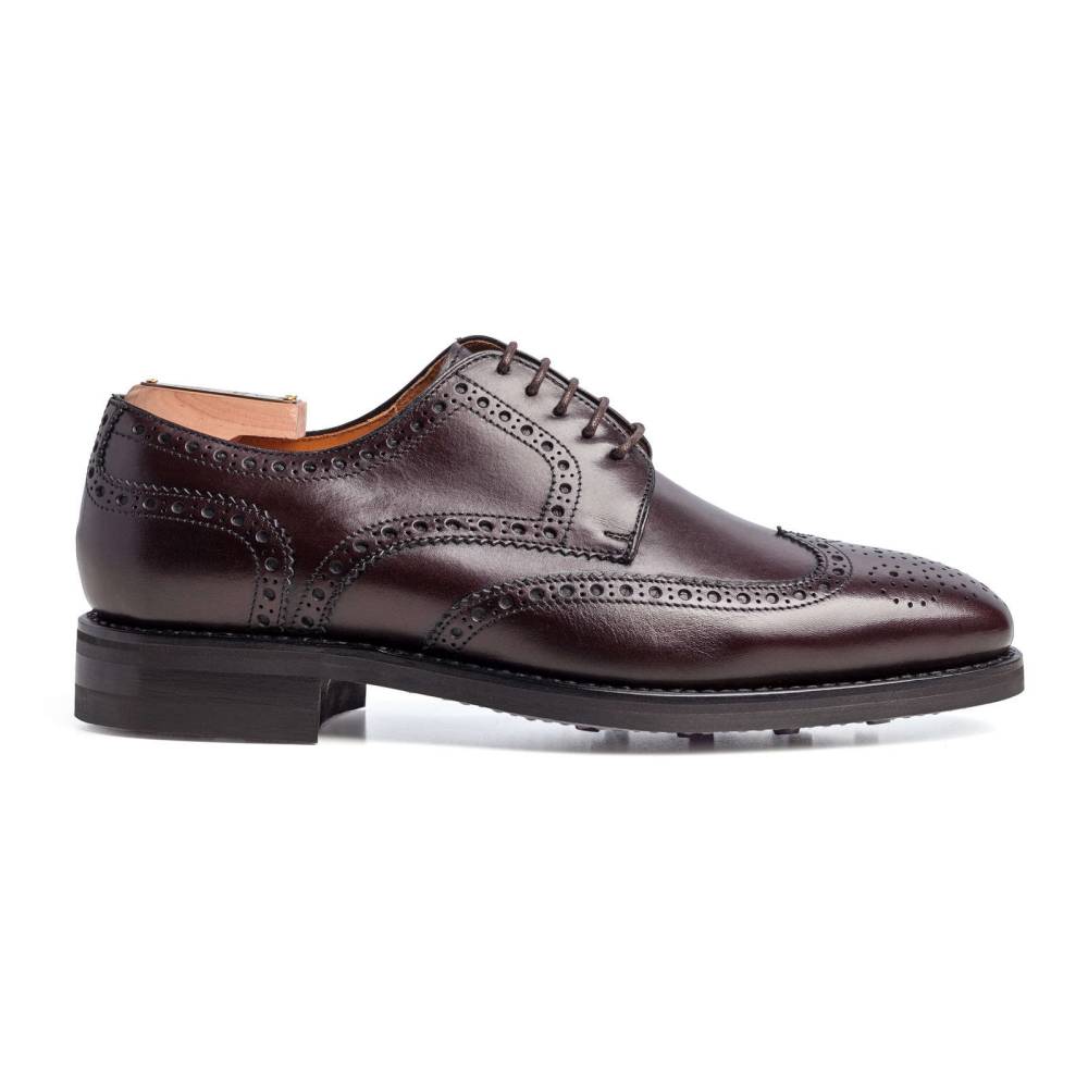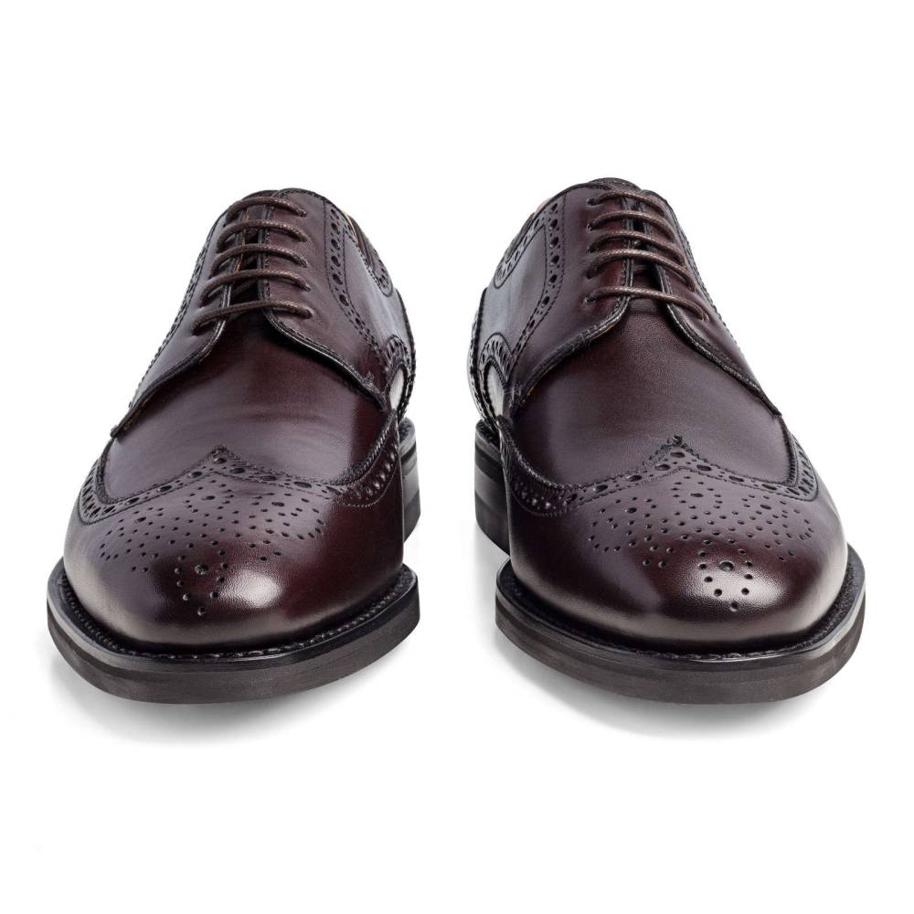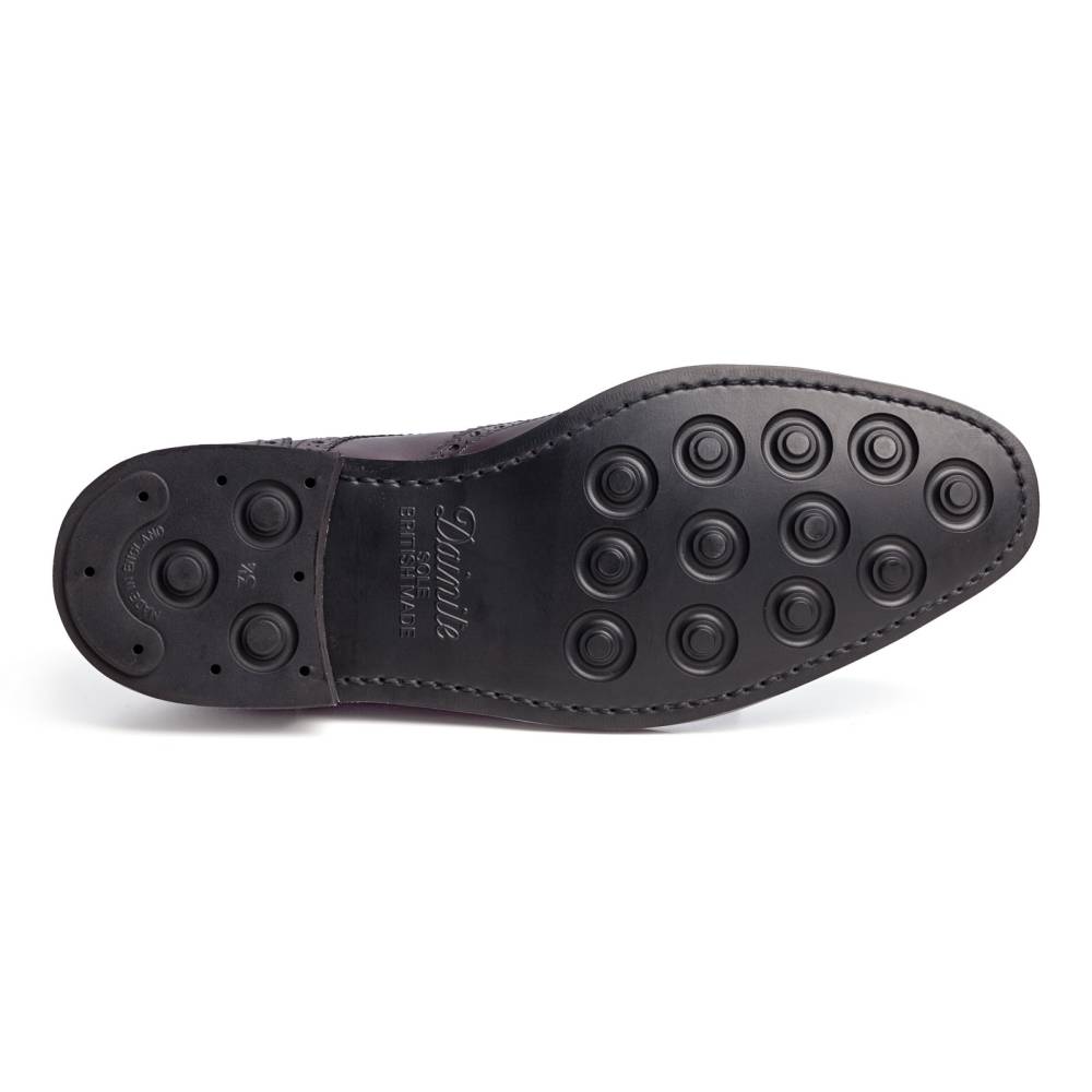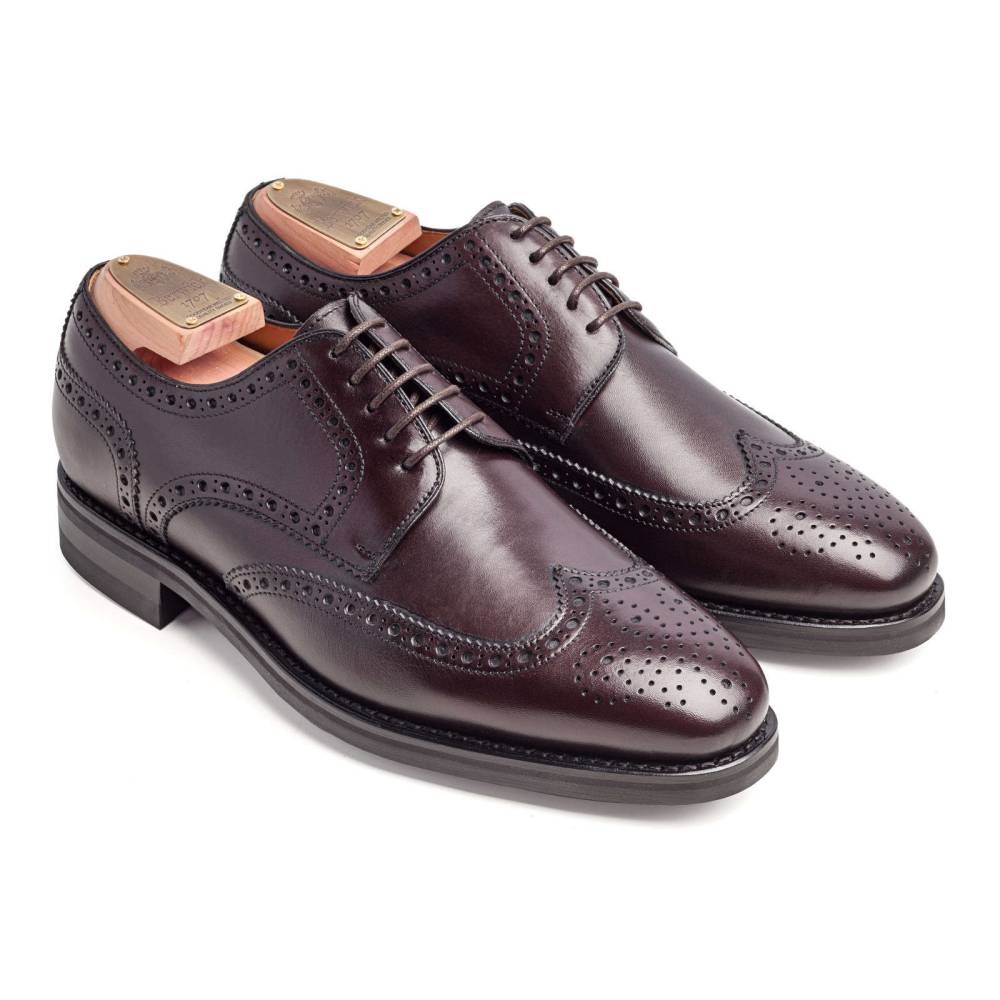 Классические мужские броги Berwick на прочной износостойкой резиновой подошве Dainite отлично подойдут для осенней погоды. Верх выполнен из плотной седельной кожи (saddle calf leather). Данный вид кожи используется для производства лошадиных сёдел, поэтому обладает значительной износоустойчивостью и прочностью. Модель украшена традиционными узорами и фестонами. Внутренняя отделка из тонкой мягкой кожи. Конструкция Goodyear Welted.