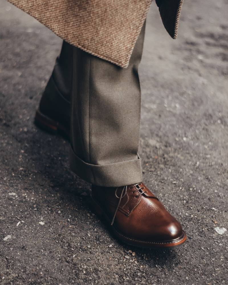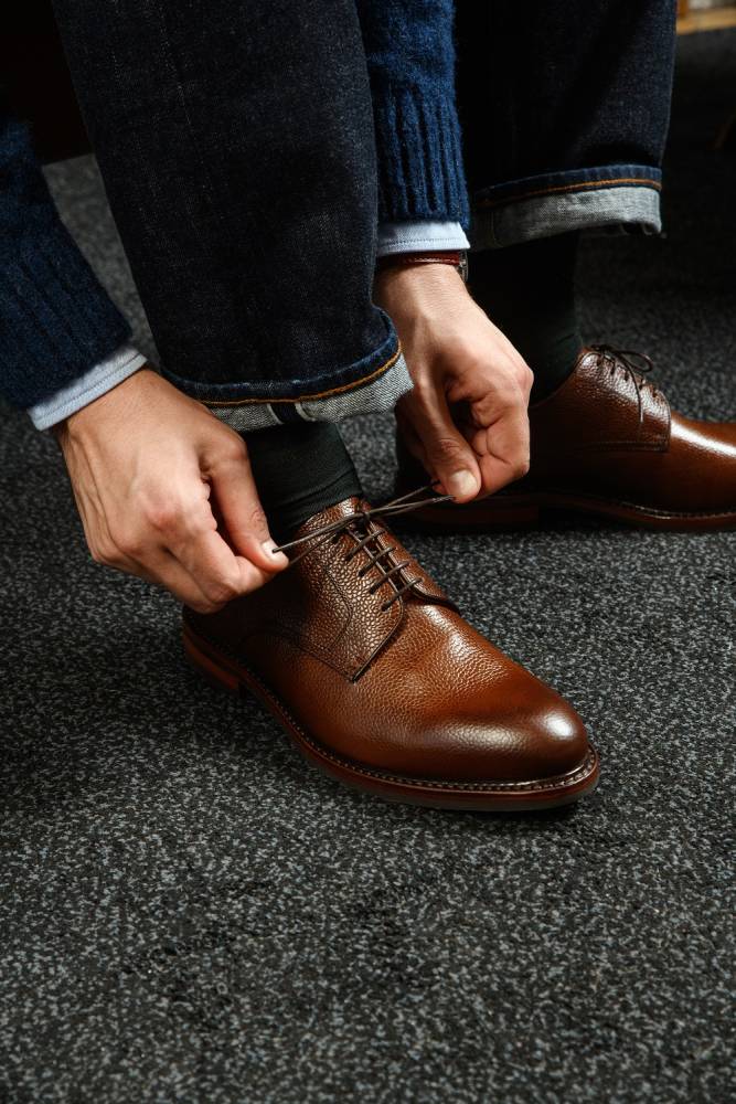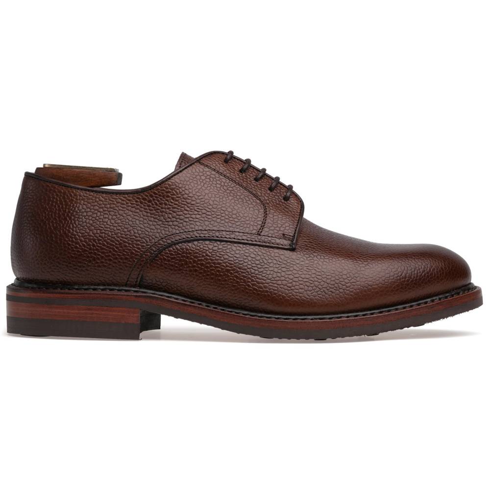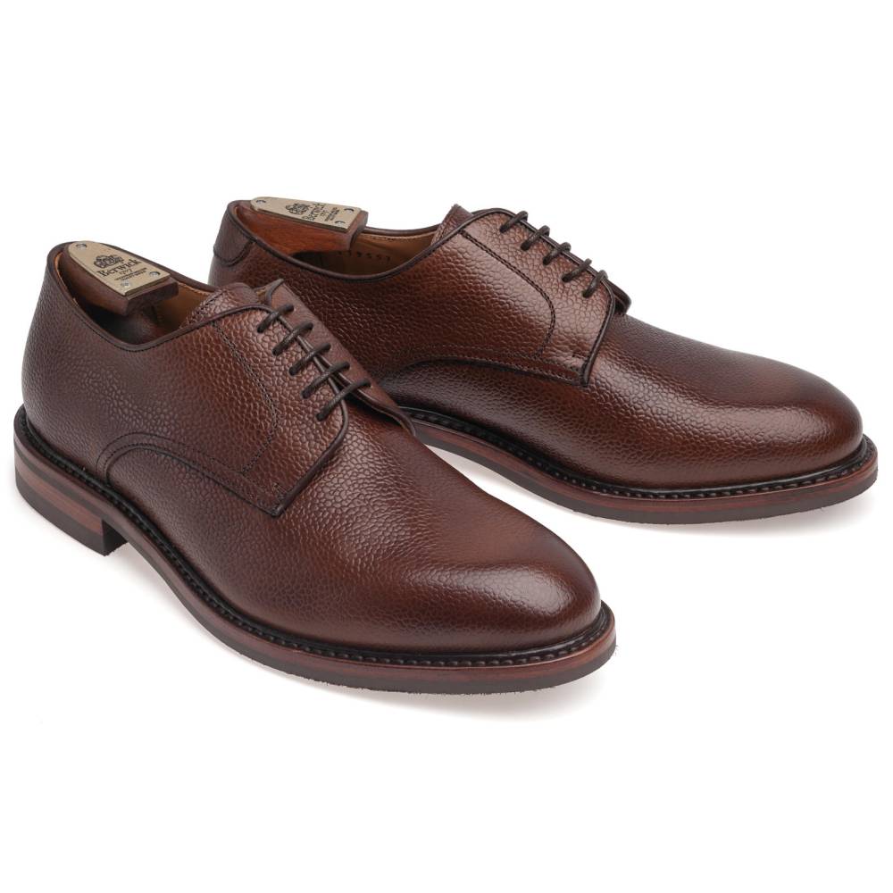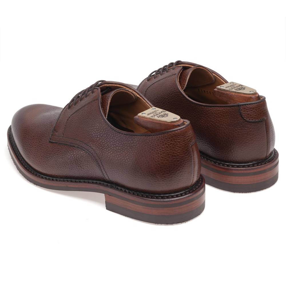 Дерби предназначены для осенней погоды, они отлично подойдут для поездок за город, а также для ненастной погоды в городе. Данная модель сочетается с неформальным классическим гардеробом, брюками из тёплого твида и джинсами из плотного денима. Обувь изготовлена на колодке 207 с полнотой G, что делает её подходящей для широкой стопы с высоким подъёмом.