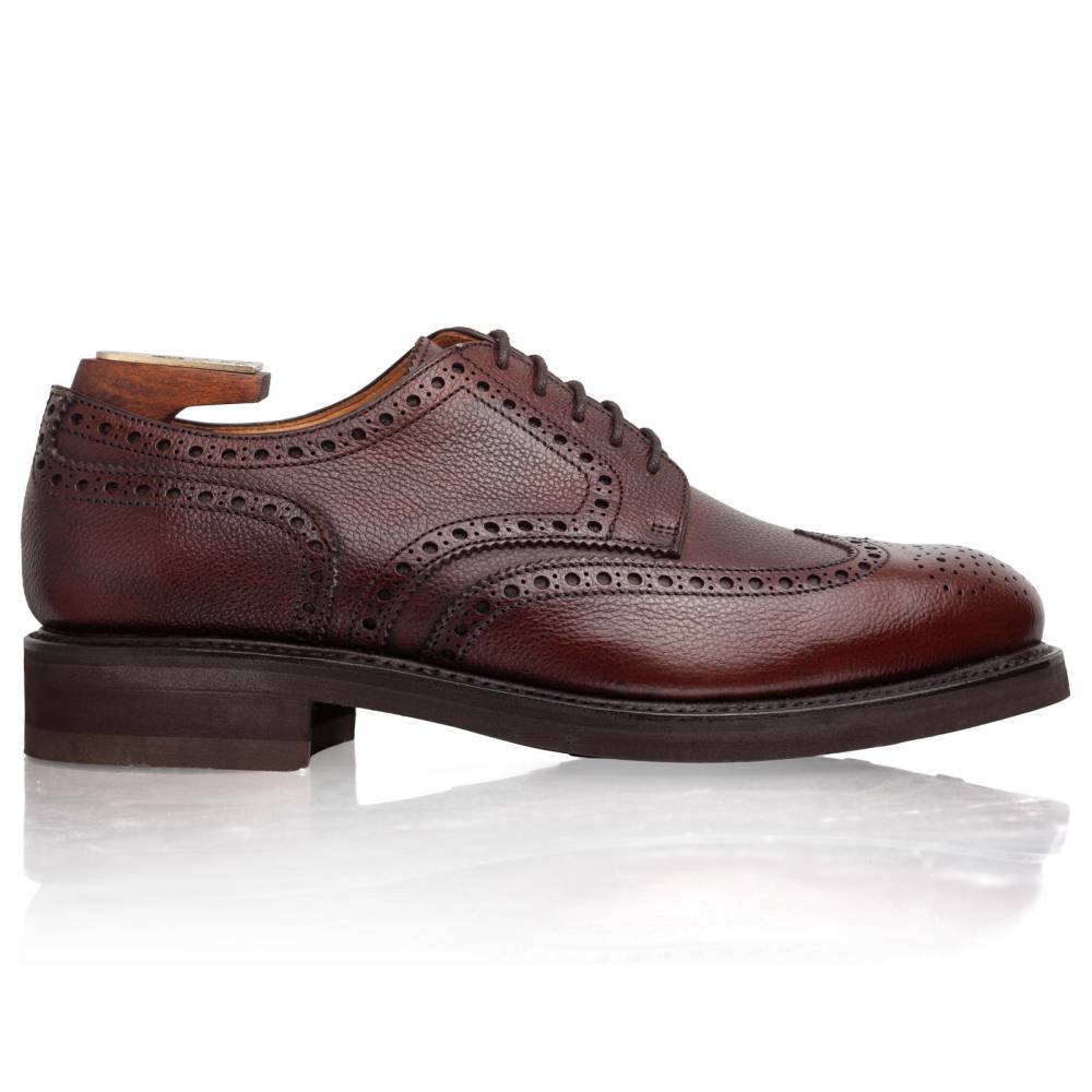 Дерби предназначены для осенней погоды, они отлично подойдут для поездок за город, а также для ненастной погоды в городе. Данная модель сочетается с неформальным классическим гардеробом, брюками из тёплого твида и джинсами из плотного денима. Обувь изготовлена на колодке 207 с полнотой G, что делает её подходящей для широкой стопы с высоким подъёмом.