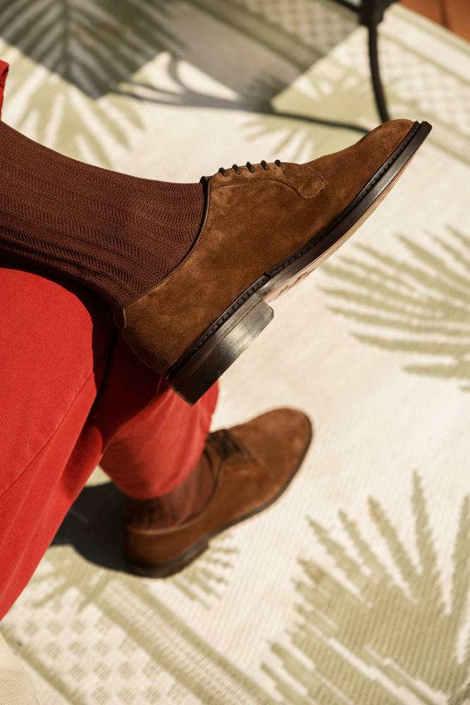 Дерби предназначены для тёплой погоды. Данная модель сочетается с неформальным классическим гардеробом: брюками из лёгкого хлопка или льна, а также с джинсами. Колодка 234 имеет полноту G, поэтому может подойти для широкой стопы с высоким подъёмом.