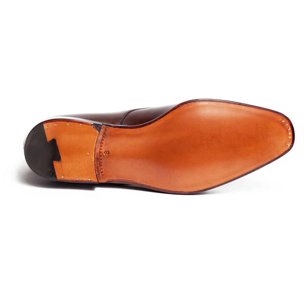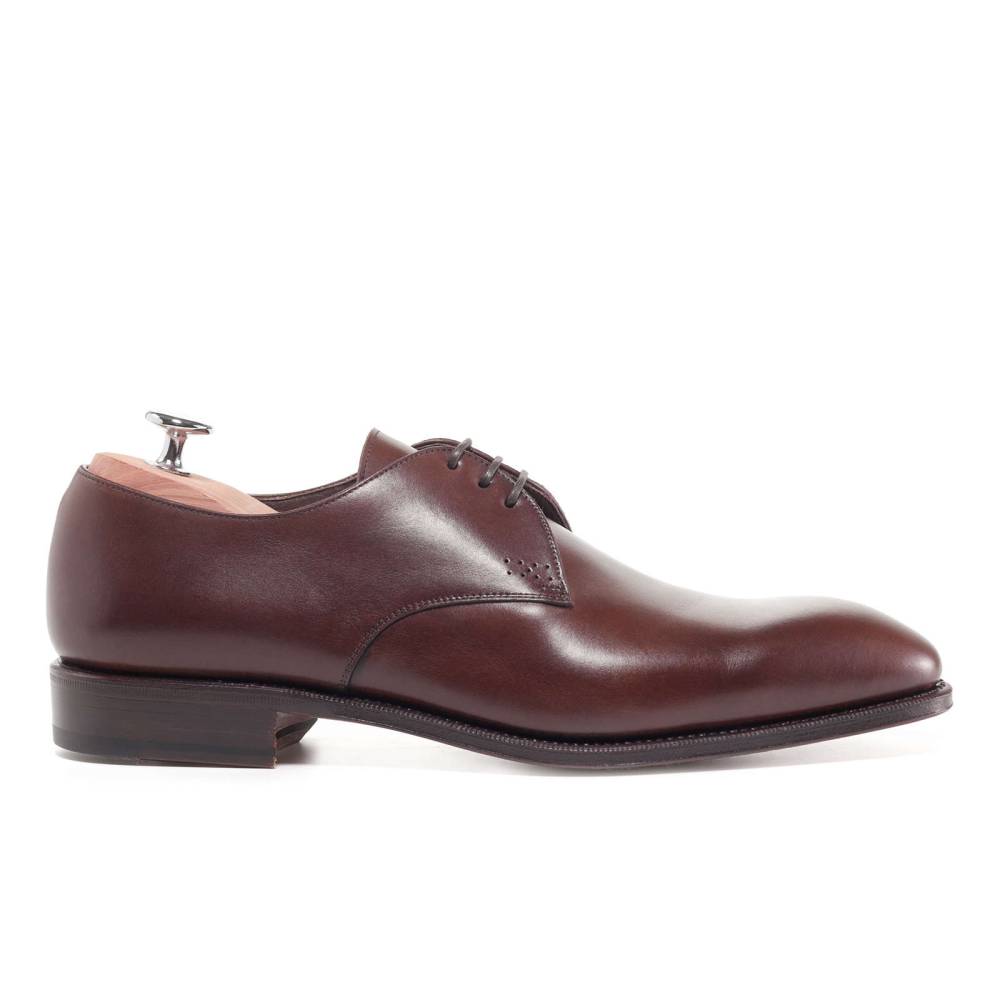 Элегантные дерби Carmina на тонкой кожаной подошве. Верхняя часть выполнена из плотной телячьей кожи коричневого цвета. Конструкция Goodyear.