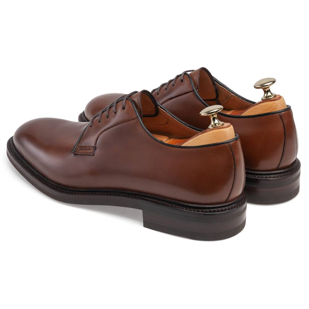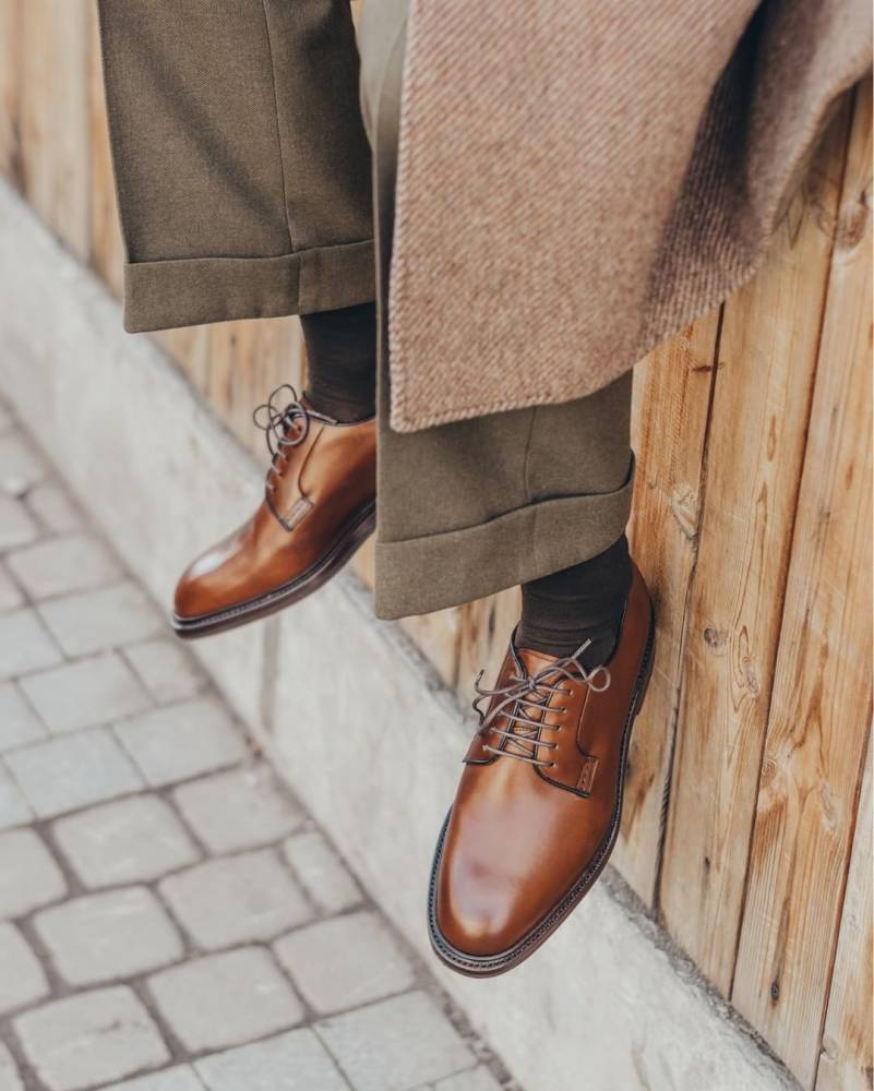 Туфли отлично впишутся в умеренно строгий классический гардероб: такие дерби будут одинаково уместны и в сочетании с пальто или непарным пиджаком и фактурными брюками, так и с курткой и джинсами из плотного денима тёмных оттенков. Модель сшита на колодке Detroit, имеющей широкую полноту (G), так что эти туфли подойдут людям с широкой стопой и умеренно высоким подъёмом.