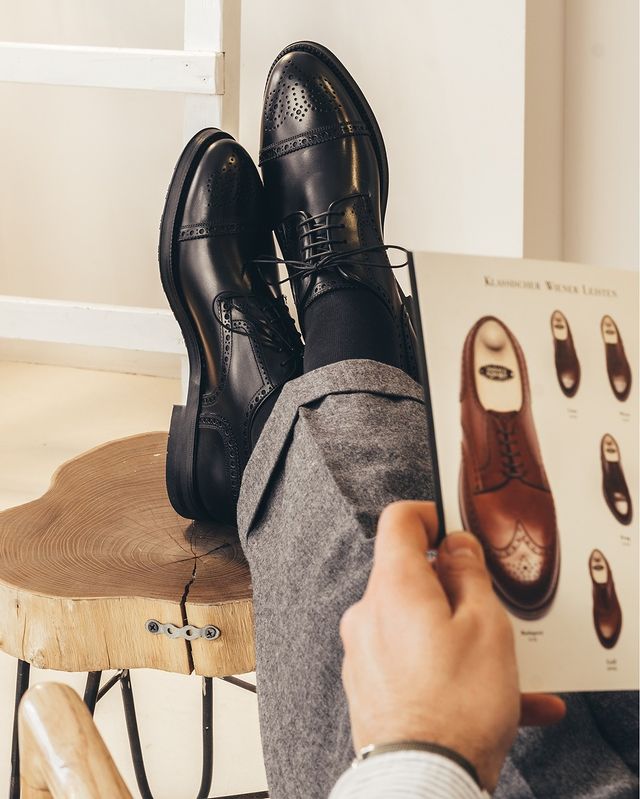 Классические универсальные туфли подойдут для делового и smart-casual стиля. Они легко сочетаются с костюмом, придавая ему непринужденный вид, а также их можно носить с джемпером, рубашкой button-down, брюками из шерсти или хлопка, или джинсами. Модель продолжает традиции австрийского и венгерского обувного мастерства.