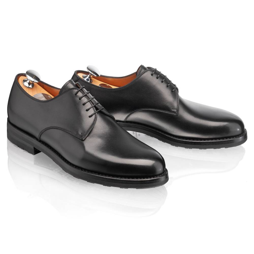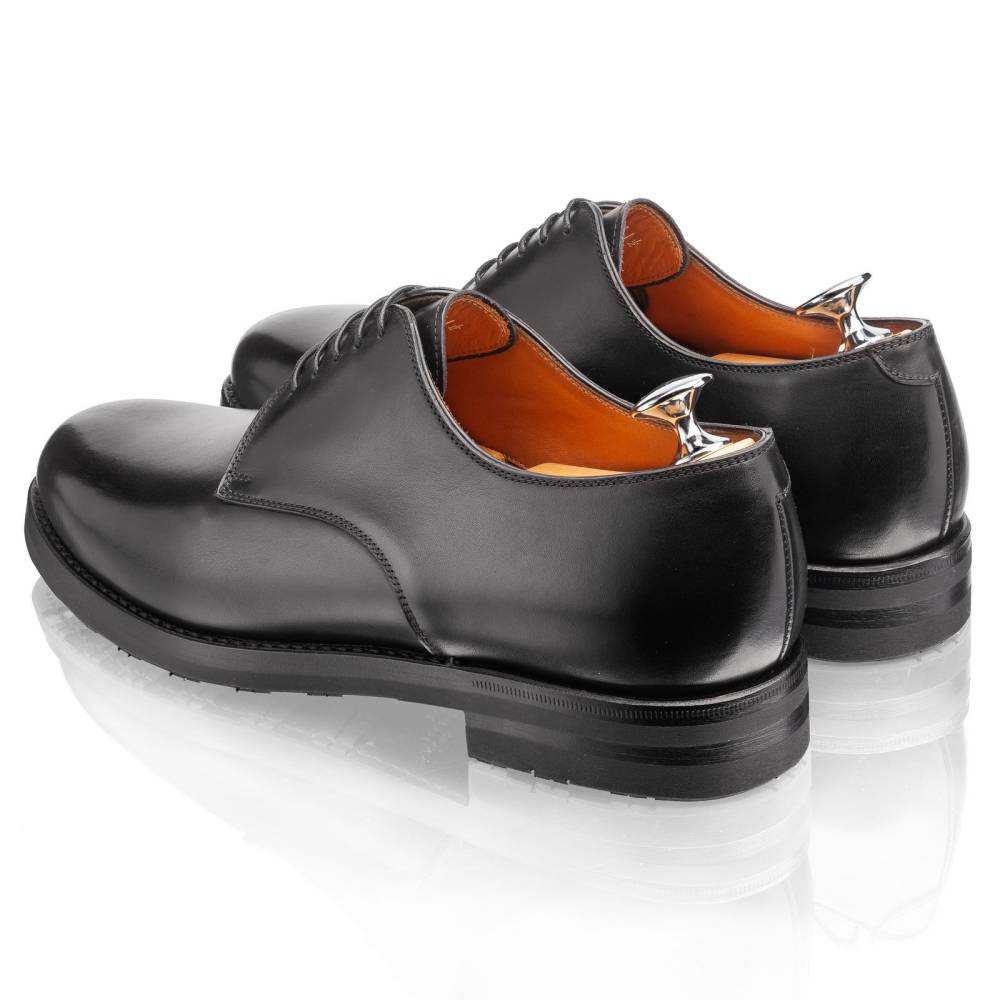 Лаконичные мужские дерби Lendvay & Schwarcz чёрного цвета на двойной подошве с противоскользящей резиной Berlino. Верх выполнен из высококачественной телячьей кожи итальянского производства. Детали верха сшиты тонкой и аккуратной строчкой, что указывает на внимание к деталям и щепетильность работников фабрики. Внутренняя отделка полностью из натуральной кожи. Конструкция Blake Rapid с пробковым слоем.
