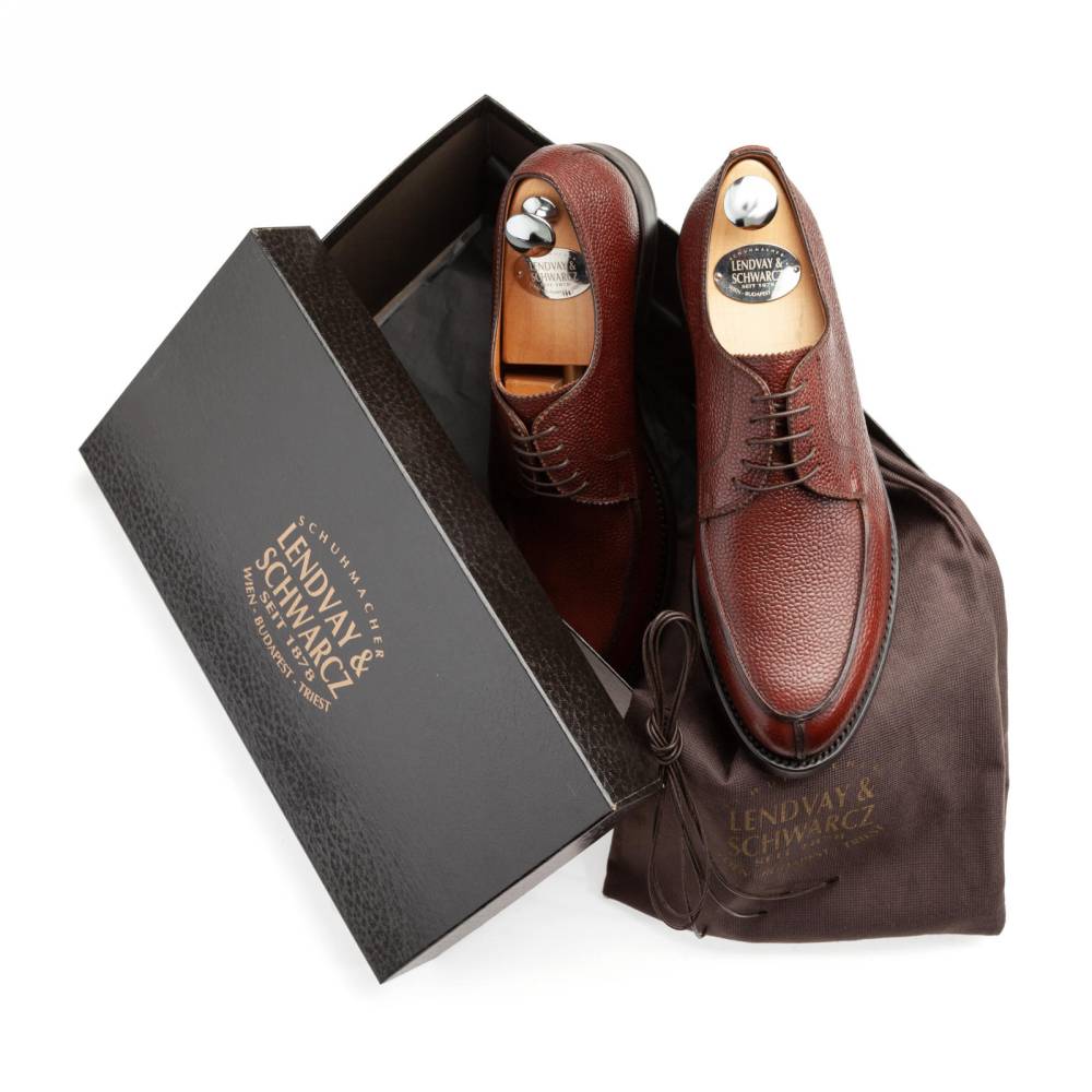 Мужские туфли Lendvay & Schwarcz коричневого цвета на тройной кожаной подошве. Верх выполнен из плотной телячьей кожи с зернистой фактурой высокого качества итальянского производства. Внутренняя отделка также полностью из натуральной кожи. Детали верха сшиты тонкой и аккуратной строчкой, что указывает на внимание к деталям и щепетильность работников фабрики. Конструкция Blake Rapid с пробковым слоем.