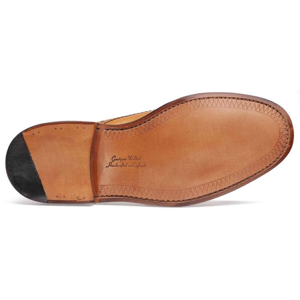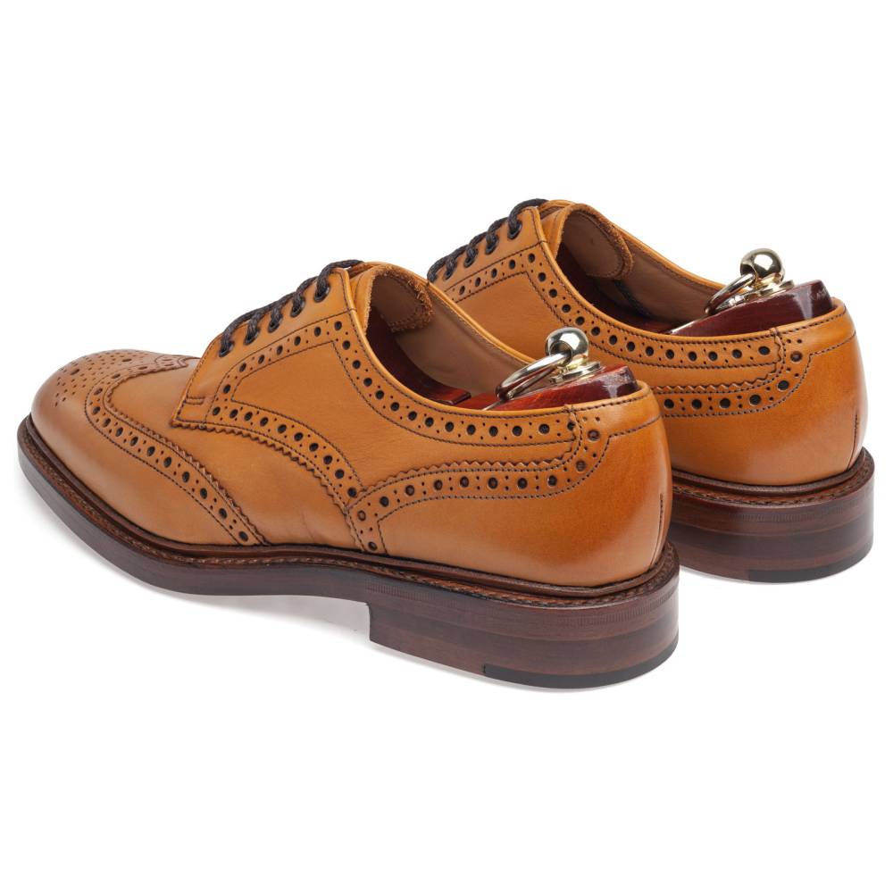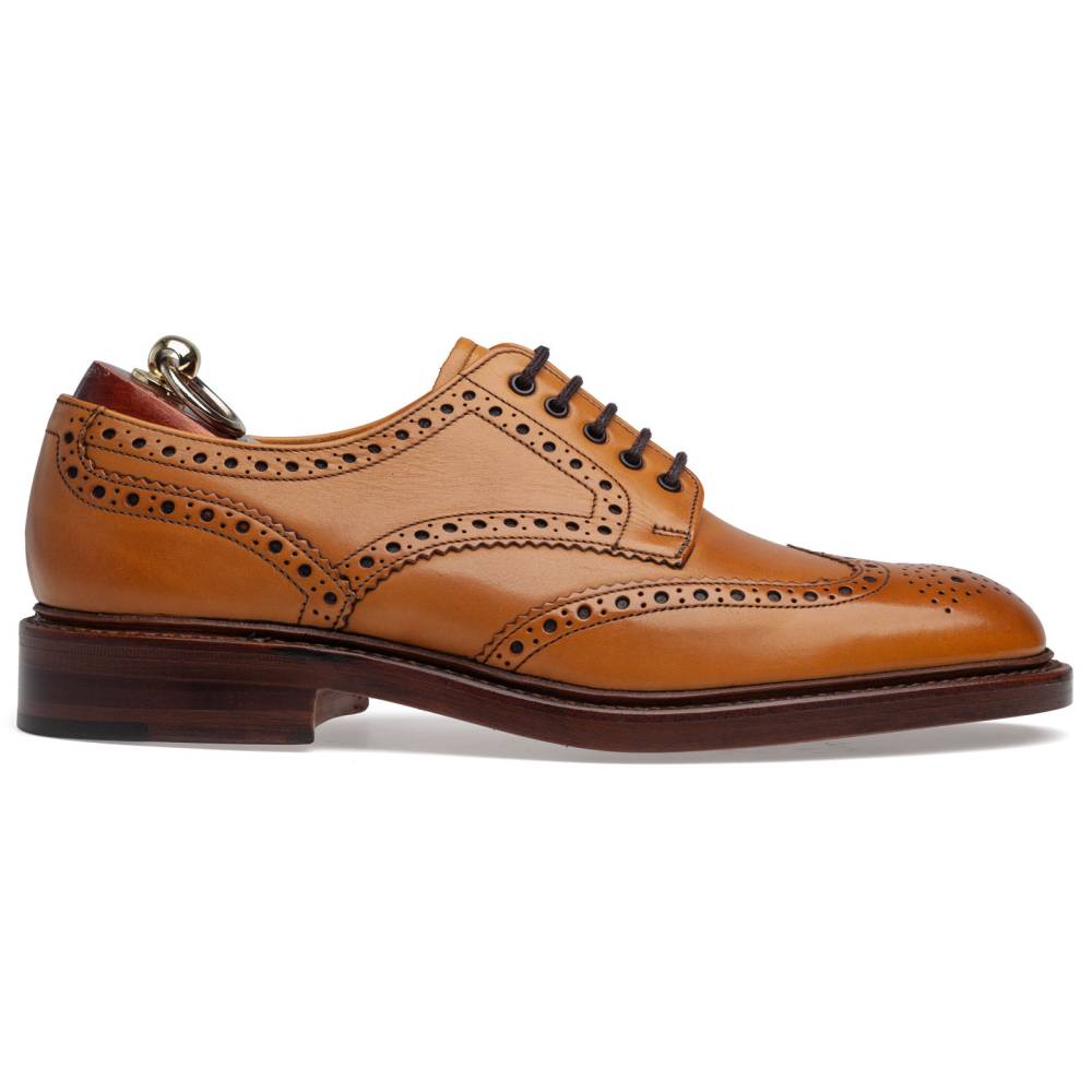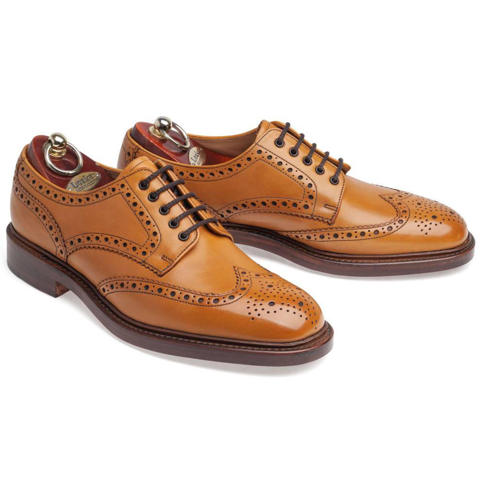 Традиционные английские броги с открытой шнуровкой Loake Chester из флагманской коллекции Loakе 1880 на двухслойной кожаной подошве. Верх выполнен из плотной телячьей кожи светло-коричневого цвета, декорирован фестонами и характерным перфорированным узором. Модель имеет штормовой рант, который усиливает устойчивость к воде. Конструкция Goodyear Welted.