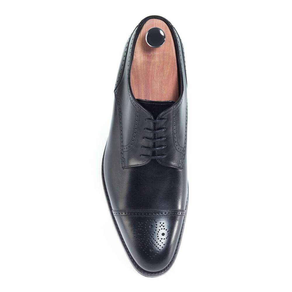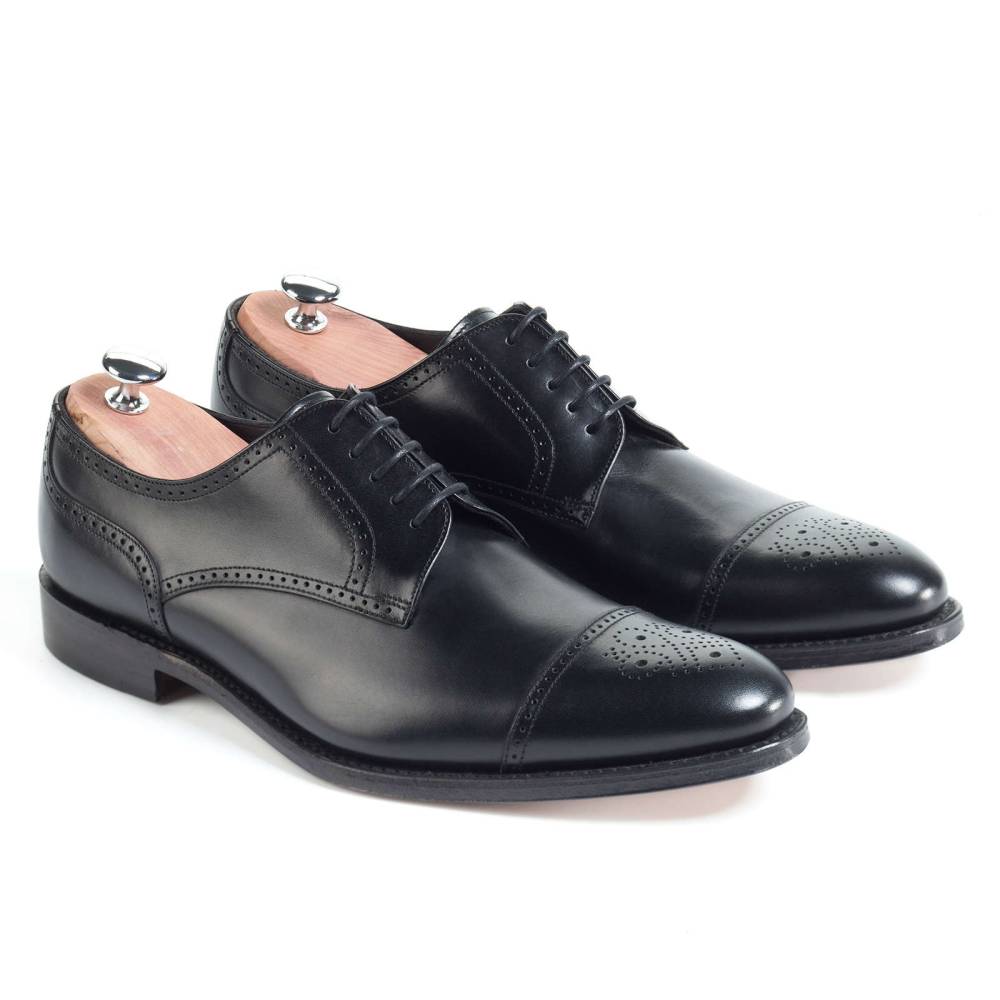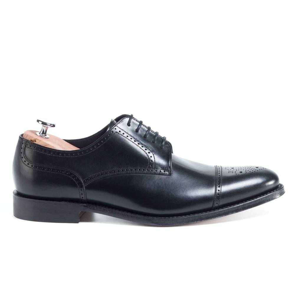 Дерби Loake Hilton из коллекции Loake 1880 на кожаной подошве. Верх выполнен из телячьей кожи чёрного цвета. Мыс декорирован медальоном. Конструкция Goodyear.