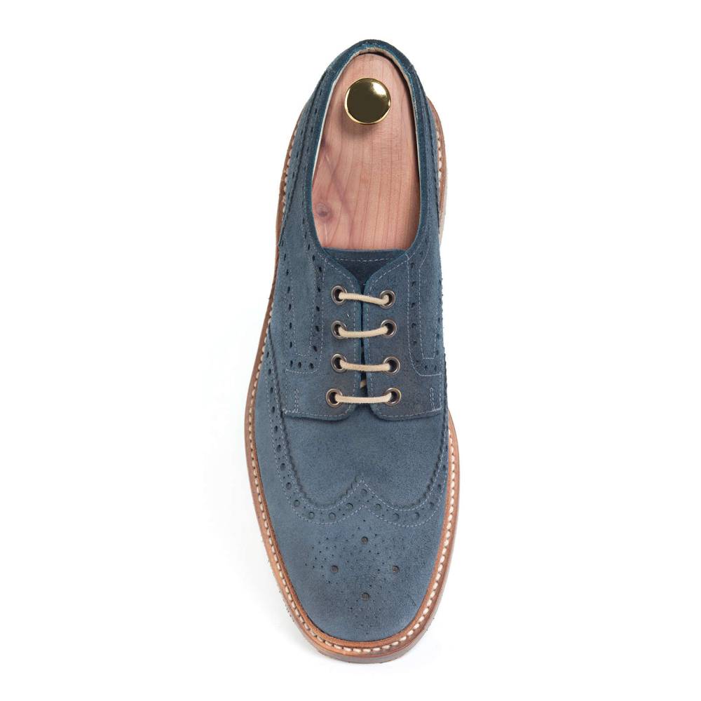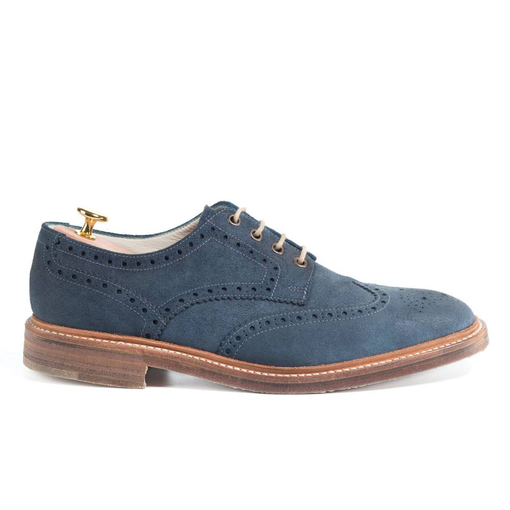 Дерби Loake Jack из коллекции Design Loake на двухслойной кожаной подошве. Верх выполнен из мягкой замши синего цвета. Модель украшена перфорированными узорами. Конструкция Goodyear.
