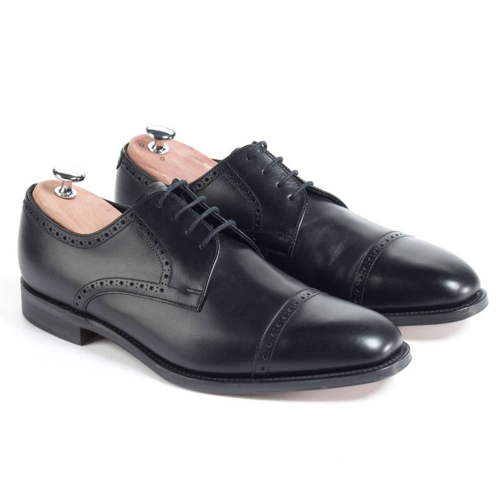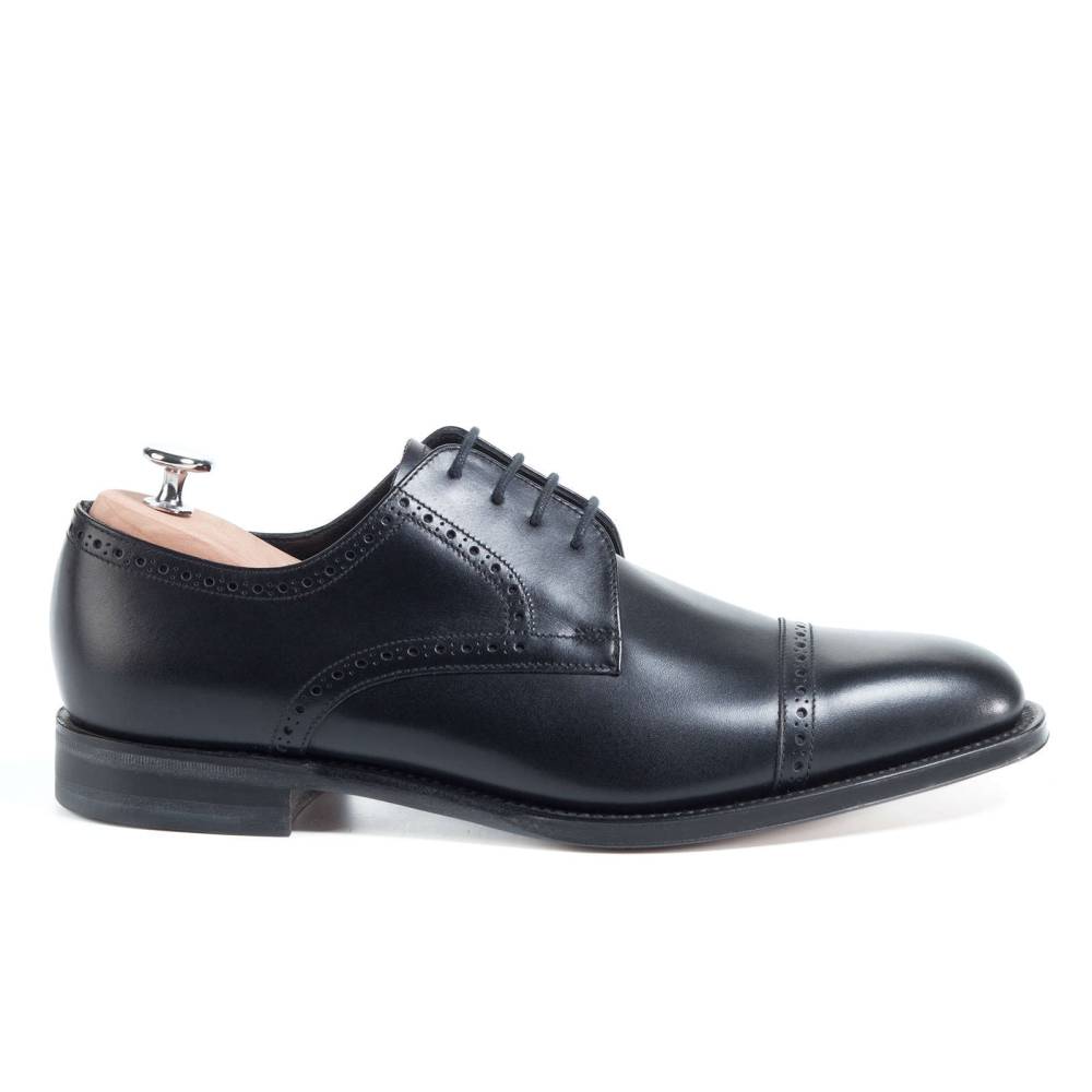Дерби Loake Regent из коллекции Loake 1880 на кожаной подошве. Верх выполнен из телячьей кожи чёрного цвета. Конструкция Goodyear.