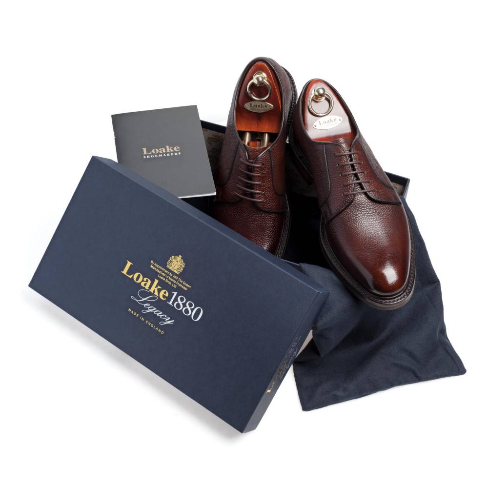 Лаконичные мужские дерби Loake тёмно-коричневого цвета из коллекции Loake 1880 Legacy. Модель выполнена из плотной телячьей кожи с зернистой фактурой и обработкой по технологии Burnished. Эта техника обработки кожи горячим воском, благодаря чему создаётся затемнение с эффектом обжига. На нижнюю часть подошвы установлена прочная резина Dainite. Модель имеет усиленный рант с окантовкой, который добавляет подошве влагоустойчивость. Конструкция Goodyear Welted.