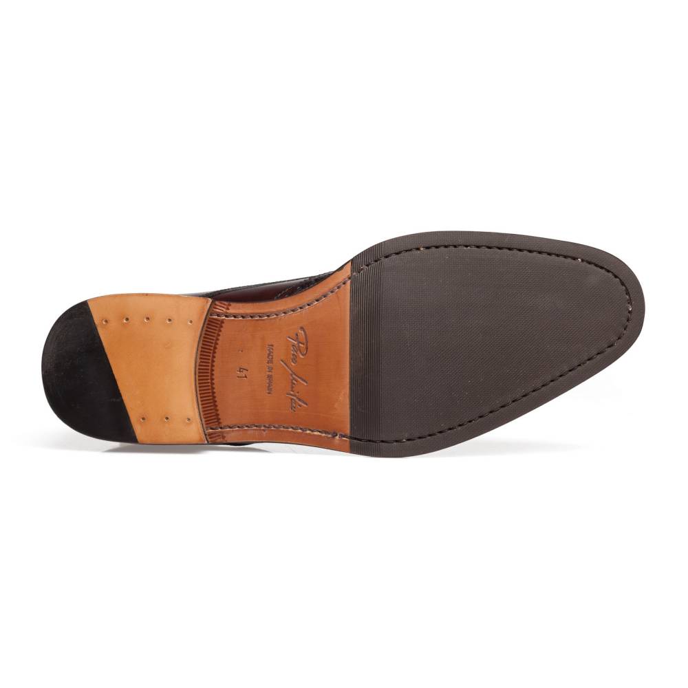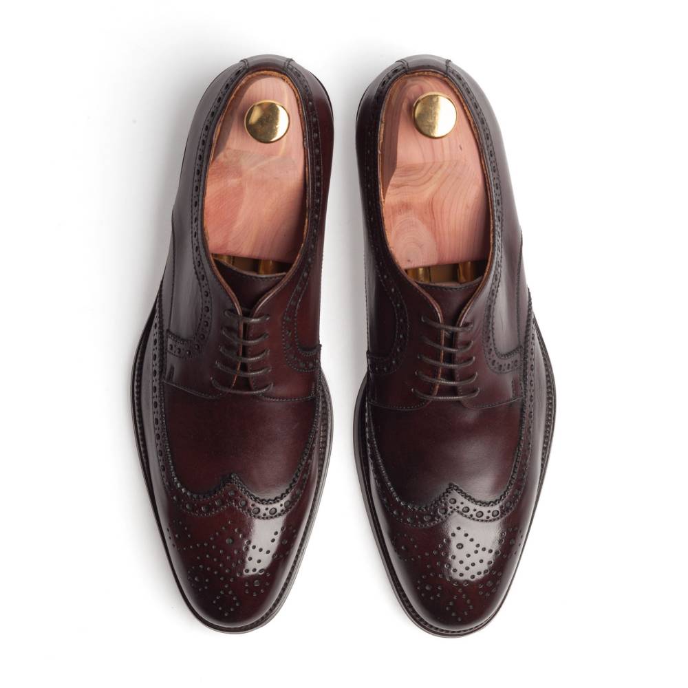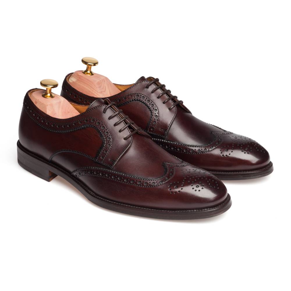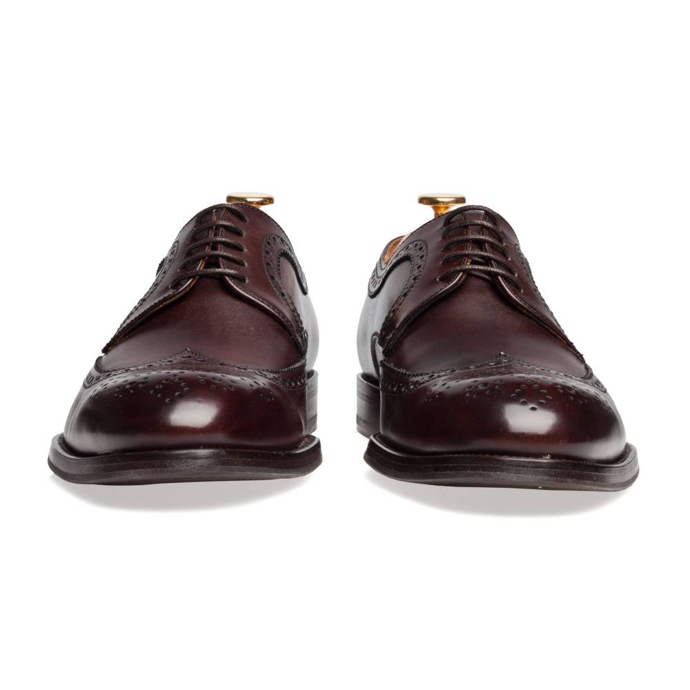 Хотя дерби с брогированием довольно неформальны, тёмно-коричневый цвет добавляет этой модели строгости и универсальности: такие туфли можно носить и с костюмами, и просто с непарными брюками из шерсти, хлопка или вельвета в мелкий рубчик. Благодаря облегчённой конструкции они будут удобны и в жаркую погоду. Колодка 177 подойдёт людям с умеренно широкой стопой.
