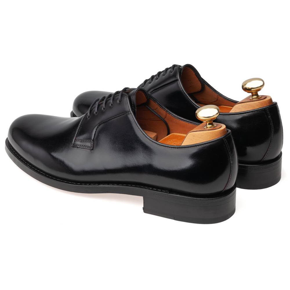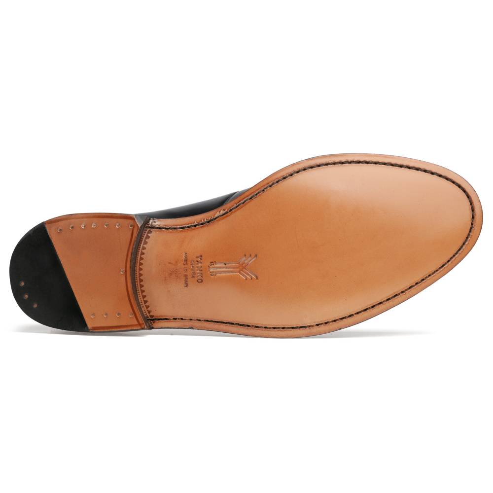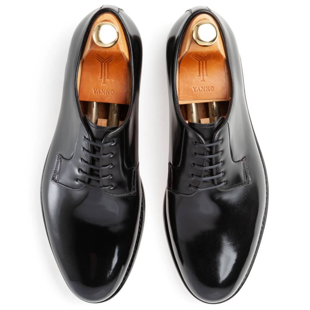 Лаконичные чёрные дерби испанской марки Yanko. Превосходно подойдут для дождливых осенних и весенних дней. Верх изготовлен из высококачественной полированной телячьей кожи, а подкладка и стелька — из кожи растительного дубления. Лёгкая и гибкая подошва выполнена из прочной чепрачной кожи. Конструкция Goodyear Welted.