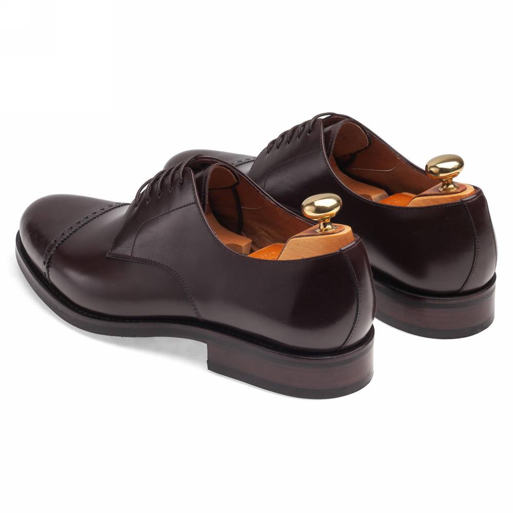 Повседневные деловые дерби Yanko выполнены из гладкой телячьей кожи тёмно-коричневого цвета. Верхняя часть украшена ненавязчивой перфорацией вдоль шва на мыске. Модель имеет практичную подошву из кожи и резины, которая превосходно подходит для города в дождливое время года. Конструкция Goodyear Welted.