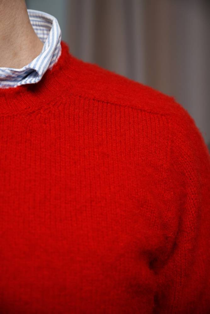 Тёплый чёсаный джемпер из шетлендской шерсти с характерным рукавом реглан (англ. saddle shoulder) — классический предмет мужского гардероба. Свободный крой, аккуратный ворот позволяют вписать такой джемпер в образы в стиле casual и в более строгие комплекты, а благодаря специальной обработке он удивительно мягок и комфортен.