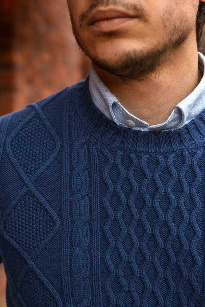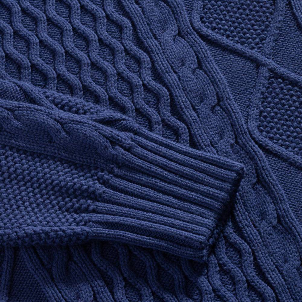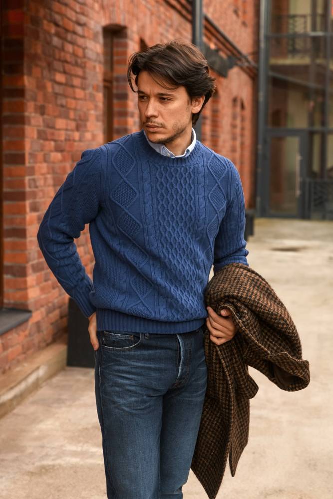 Традиционный рыбацкий джемпер с косами выполнен из мягкого перуанского хлопка Pima, который отличается тонкими и длинными волокнами: изделия из такого хлопка приятны к телу и долговечны. Рукав втачной. Джемпер прекрасно сочетается с casual-образами в светлых или тёмных тонах.
