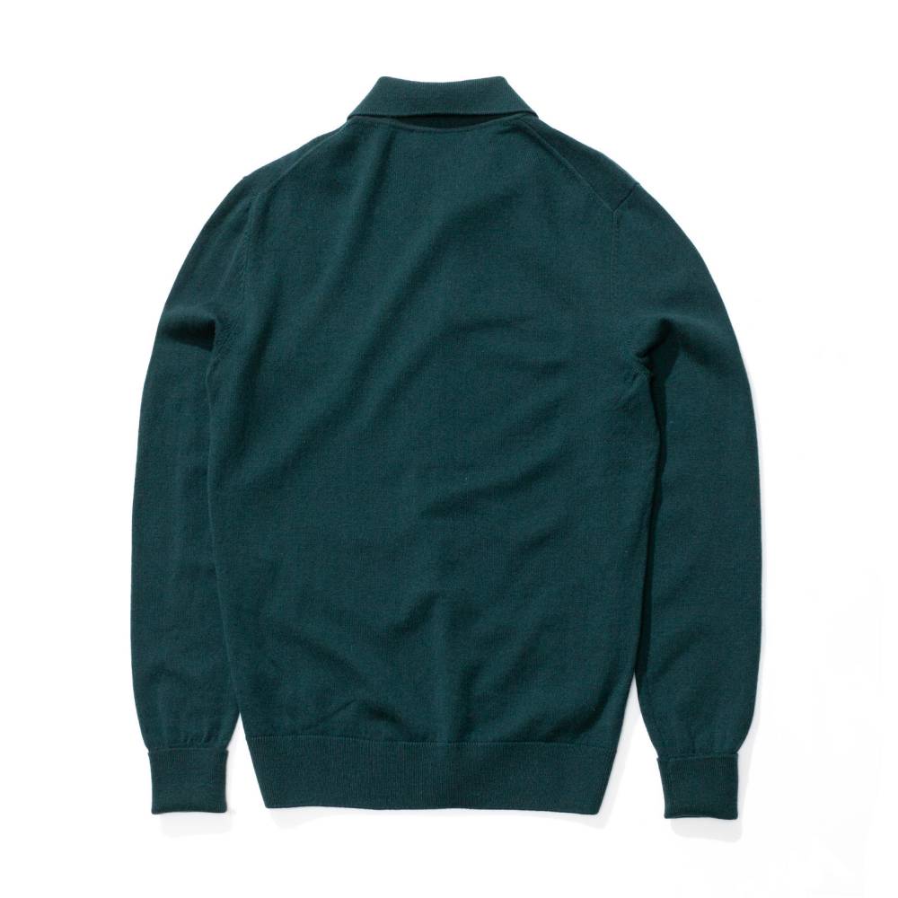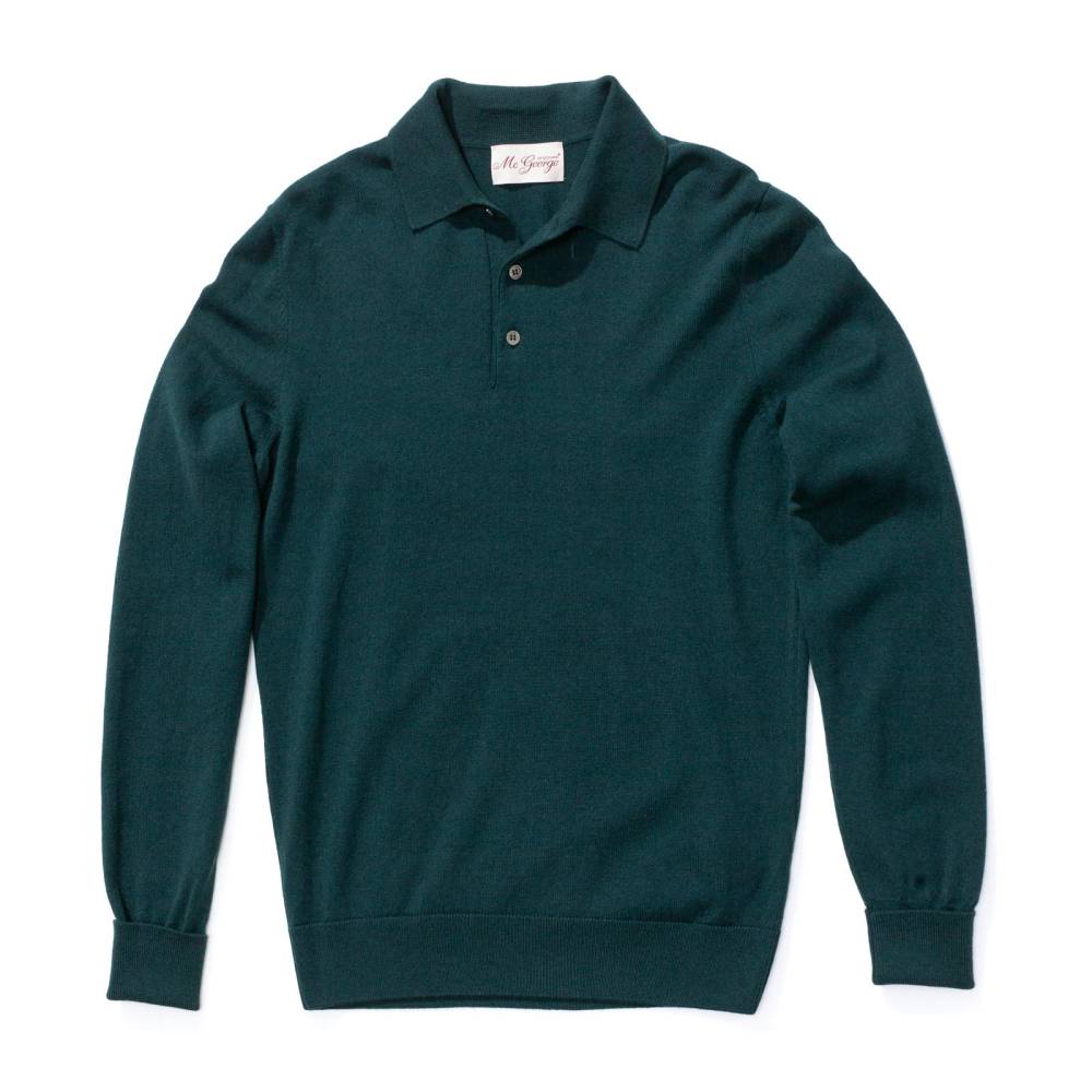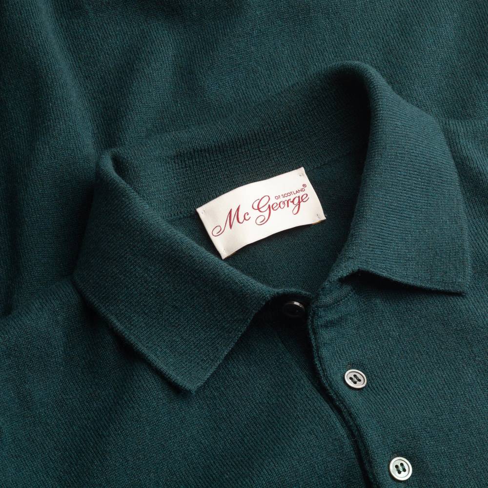 Элегантный джемпер-поло McGeorge of Scotland тёмно-зелёного цвета. Модель выполнена из мягкого приятного на ощупь трикотажа, в состав которого входят шерсть и кашемир. Характерный для поло отложной воротник застегивается на три пуговицы. Манжеты с отворотом из эластичной ребристой вязки, мягко облегают запястье, не растягиваются со временем и отлично держат форму. Эта модель прекрасно дополнит повседневный и классический гардероб. Джемпер-поло невероятно универсален: его можно носить как под неформальным костюмом или пиджаком, так и в качестве самостоятельного элемента одежды — с брюками или джинсами.