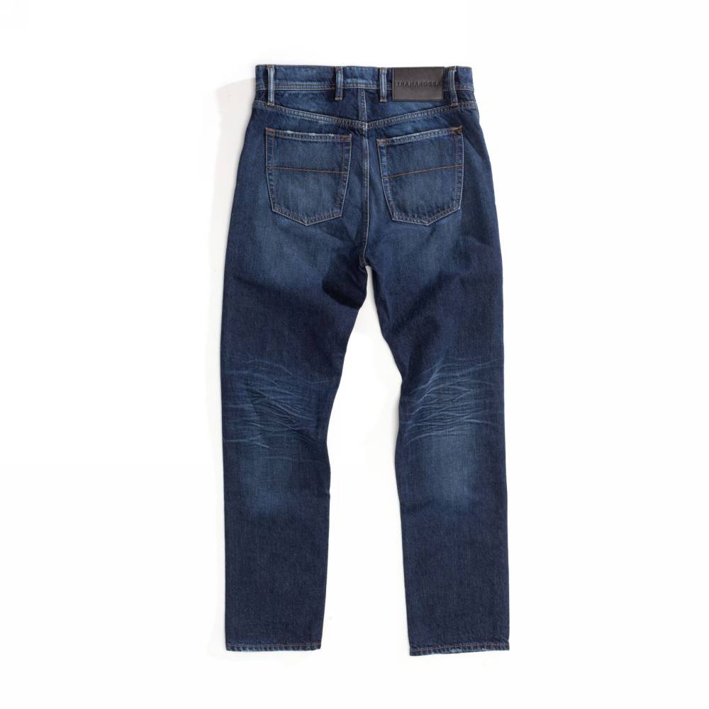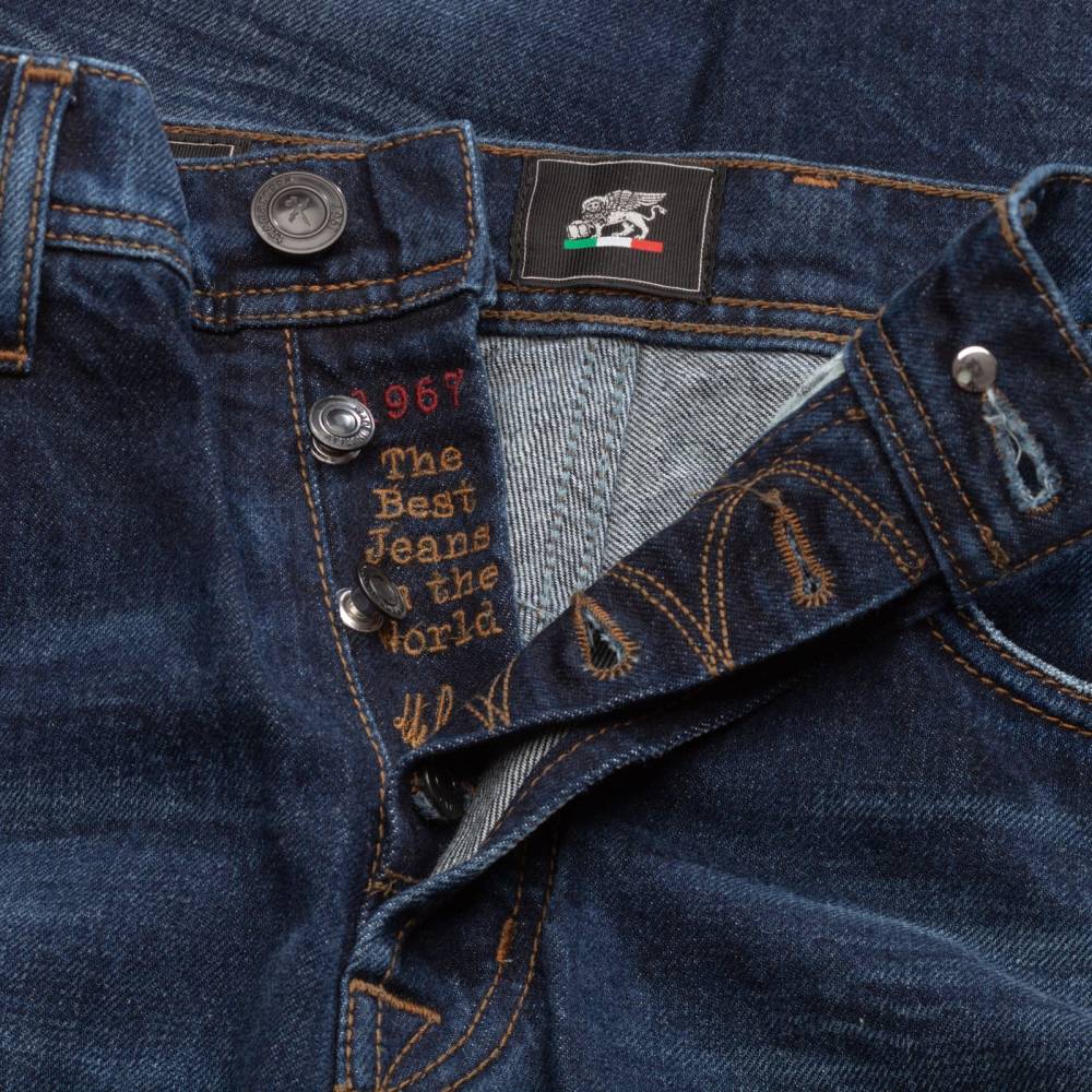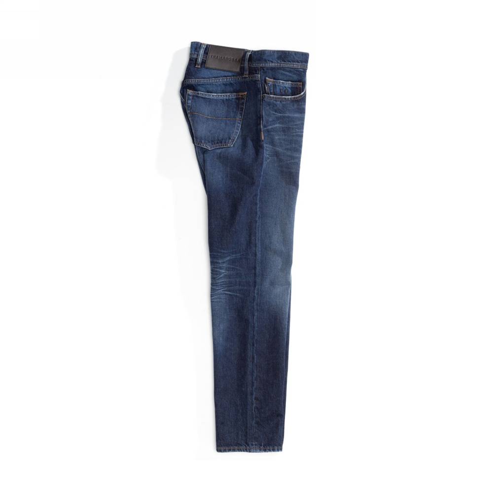 Лаконичные тёмно-синие джинсы модель 2074 из коллекции Black Collection итальянского бренда Tramarossa. Прямой свободный силуэт слегка зауженный книзу. Средняя посадка талии и пять классических карманов. Застегиваются на болты. Ткань: мягкий деним премиального качества с маркировкой D526 Comforrt Denim без добавления эластана. Модель прошита строчками спокойного бежевого оттенка. Благодаря этому она станет подходящим вариантом для сдержанных повседневных образов.