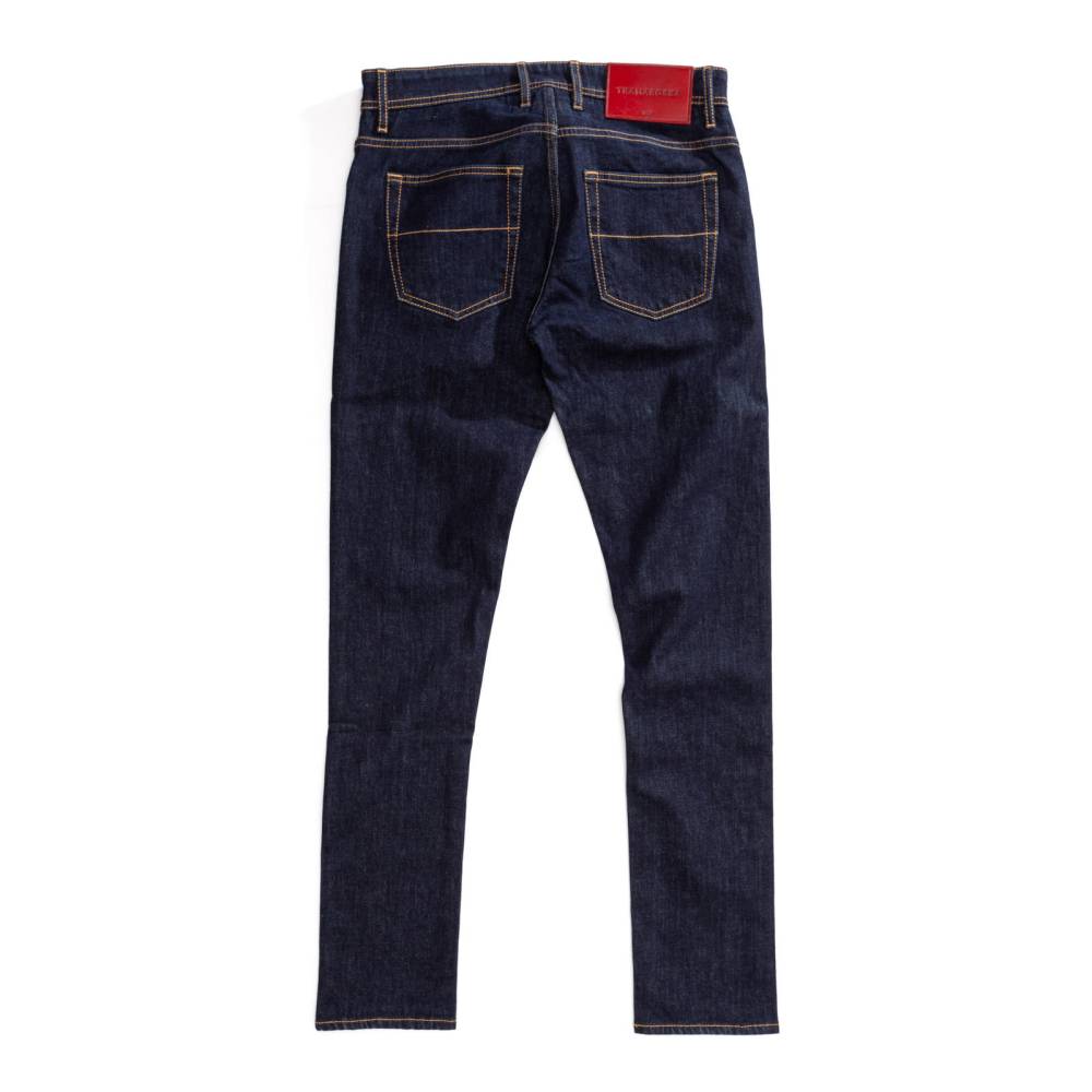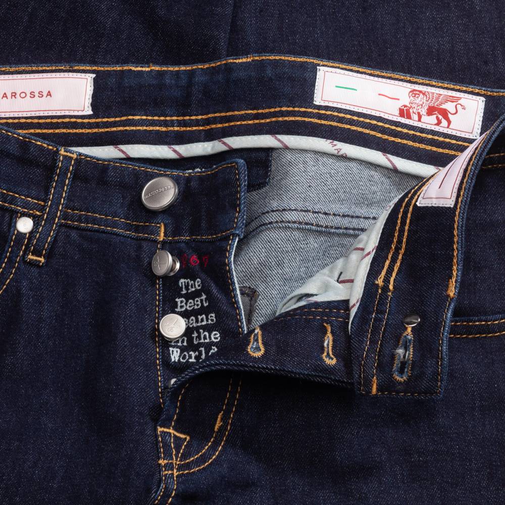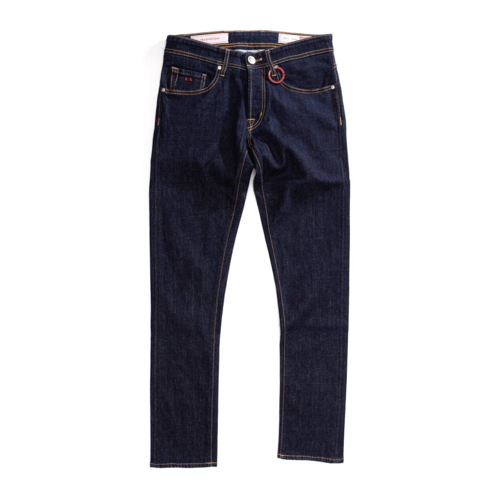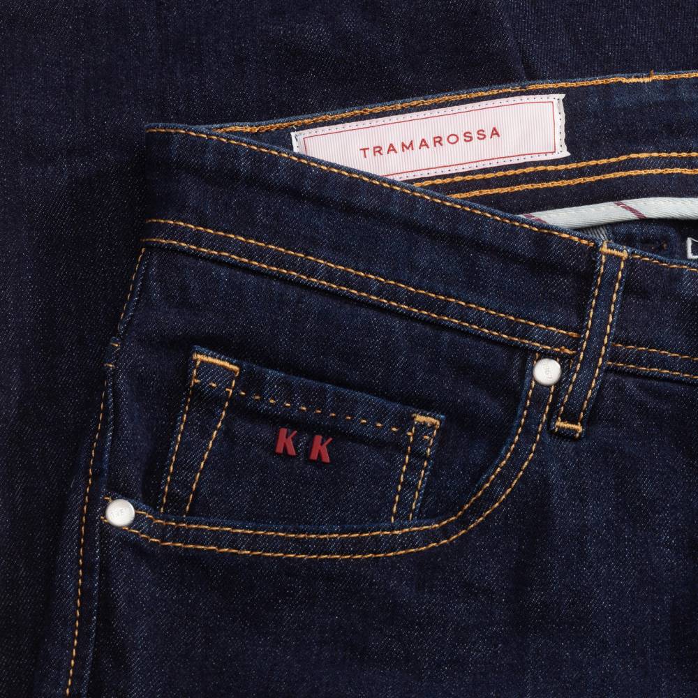 Лаконичные тёмно-синие джинсы Leonardo из базовой линейки “Founded in 1967” итальянского бренда Tramarossa. Облегающий силуэт, зауженный книзу. Средняя посадка талии и пять классических карманов. Застёгиваются на болты. Ткань: мягкий необработанный деним премиального качества с маркировкой blue raw. Модель прошита контрастными строчками. Небольшое количество эластана делает ткань комфортнее, а также препятствует вытягиванию и возвращает её в первоначальную форму.