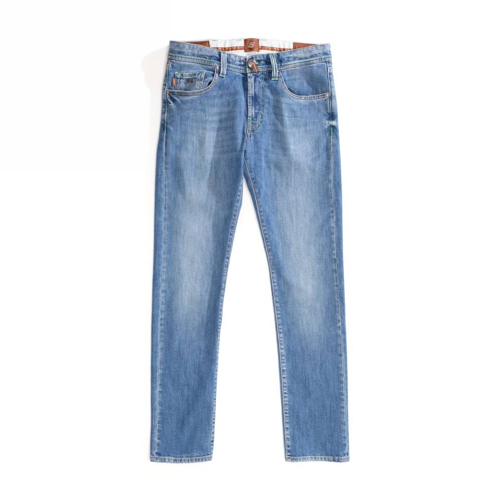 Лаконичные голубые джинсы Michelangelo итальянского бренда Tramarossa. Прямой силуэт слегка зауженный книзу. Средняя посадка талии и пять классических карманов. Застегиваются на молнию. Ткань: высококачественный премиальный деним миланской компании Candiani с маркировкой D352, который подходит для всех сезонов. В составе присутствуют 2% эластана для большего комфорта движений. Модель прошита контрастными светло-коричневыми и зелёными нитями.