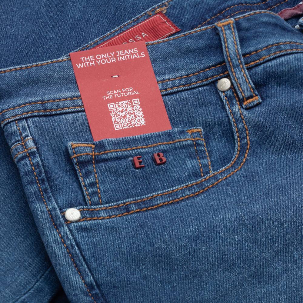 Джинсы украшаются металлическими инициалами владельца на маленьком кармане. В комментариях к заказу можно указать, какие буквы необходимо установить.