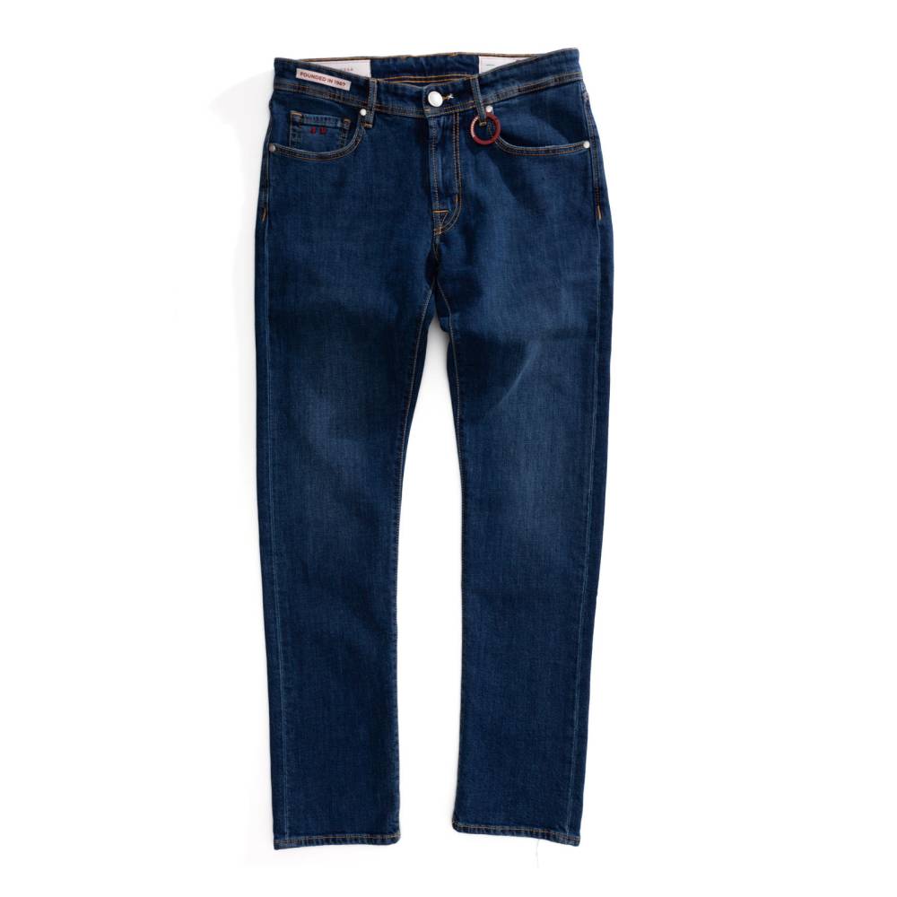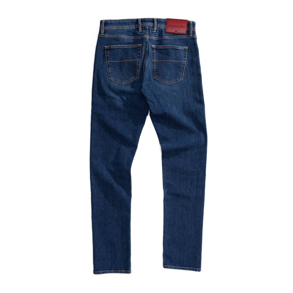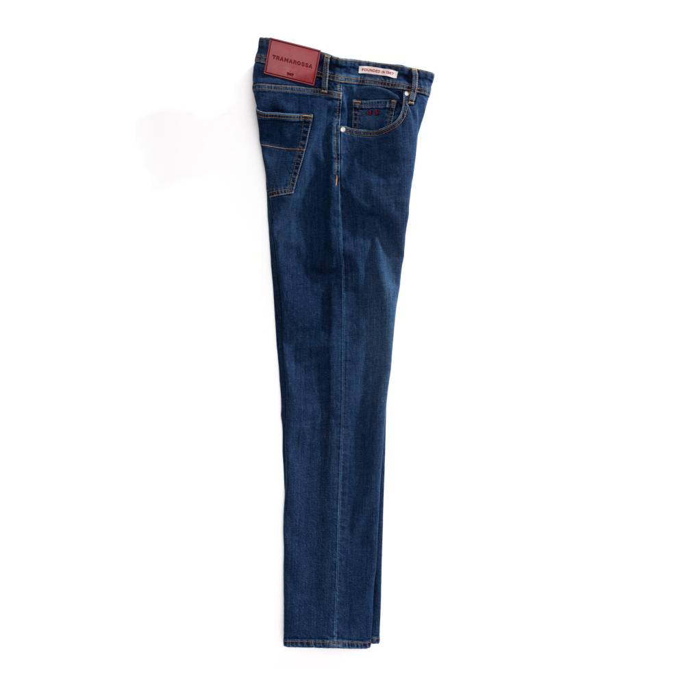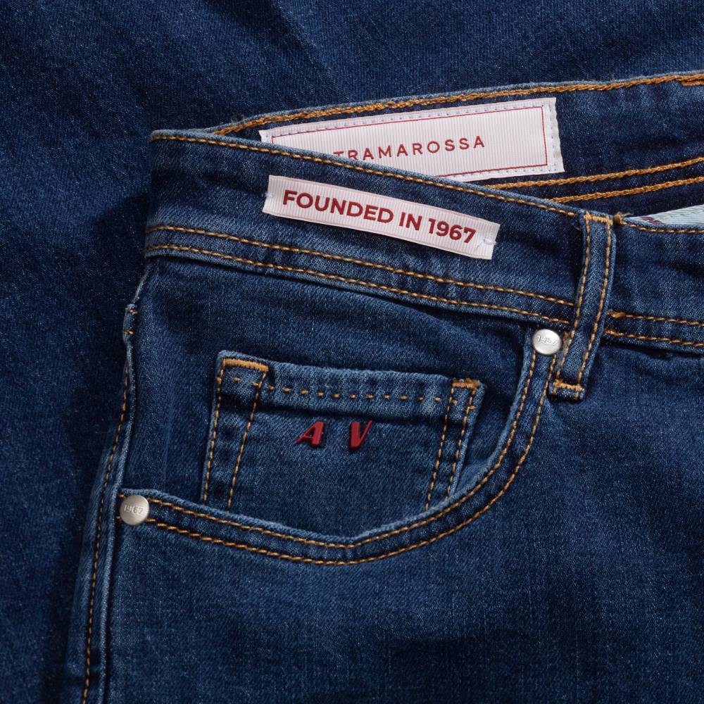 Лаконичные синие джинсы Michelangelo из базовой линейки “Founded in 1967” итальянского бренда Tramarossa. Стандартный силуэт слегка зауженный книзу. Средняя посадка талии и пять классических карманов. Застёгиваются на молнию. Ткань: мягкий обработанный деним премиального качества с маркировкой blue heritage. Модель прошита ненавязчивыми контрастными строчками. Небольшое количество эластана делает ткань комфортнее, а также препятствует вытягиванию и возвращает её в первоначальную форму.