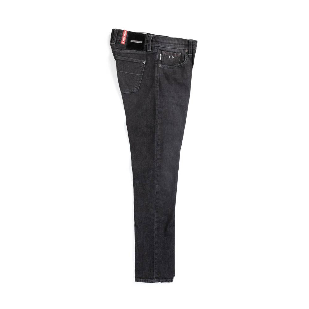 Мужские джинсы Michelangelo прямого силуэта «regular fit» бренда Sartoria Tramarossa. Модель выполнена из мягкого высококачественного денима тёмно-серого цвета. Джинсы застегиваются на молнию и пуговицу. Пояс декорирован кожаной нашивкой с логотипом бренда.