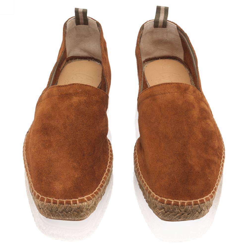 Культовые эспадрильи Pablo испанского бренда Castañer созданы из качественных натуральных материалов. Верх выполнен из мягкой натуральной замши коричневого цвета без подкладки. Подошва состоит из нескольких слоёв джута - натурального волокнистого материала. Благодаря джуту обувь имеет высокую воздухопроницаемость и идеально подходит даже для самой жаркой погоды. От влаги и изнашивания джутовую подошву защищает тонкий слой резины снизу.