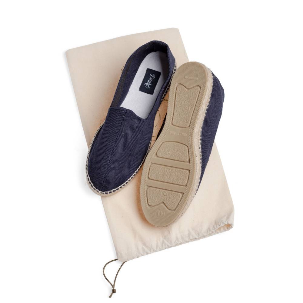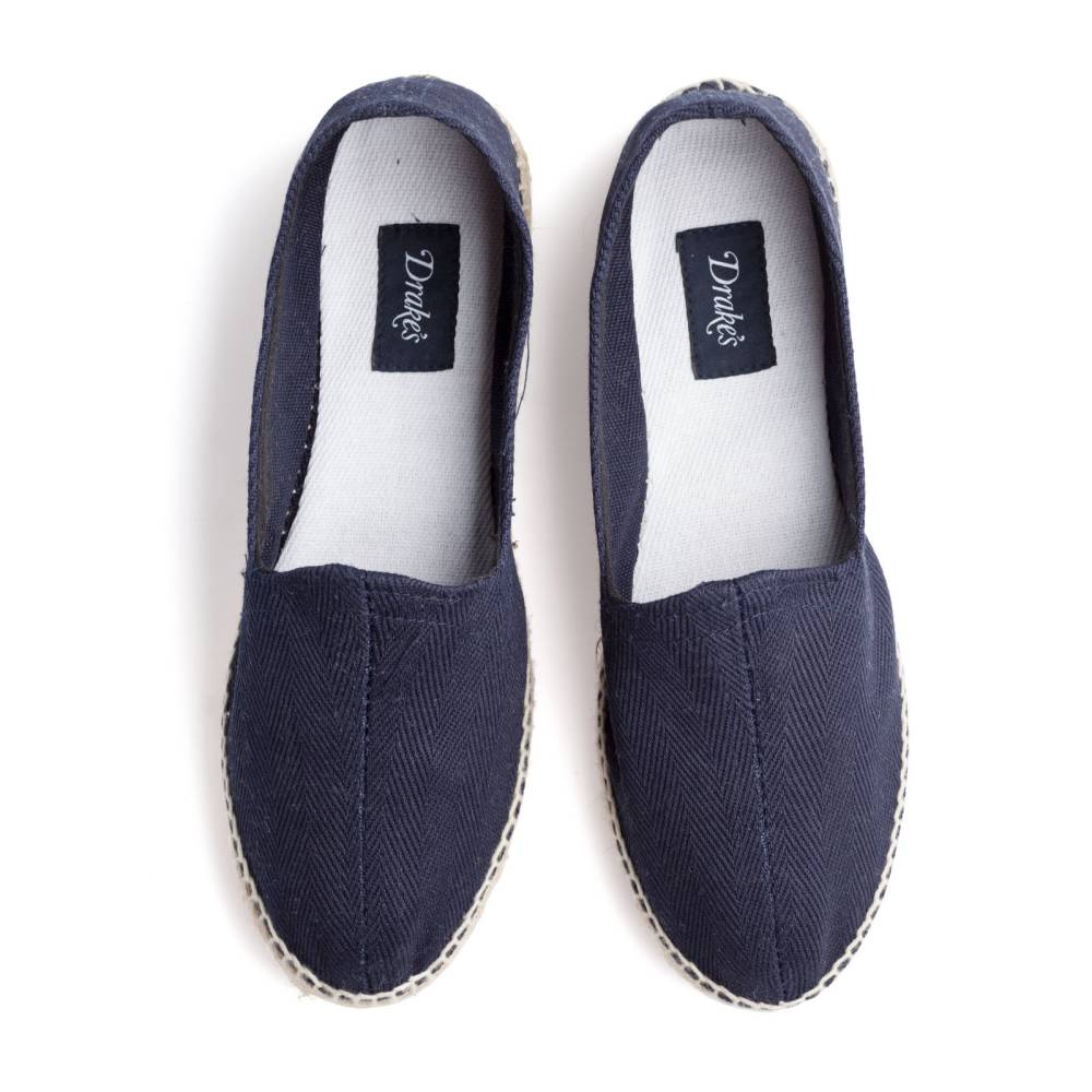 Мужские эспадрильи от английской марки Drake's созданы из качественных натуральных материалов. Верх выполнен из прочной холщовой ткани в ёлочку. Подошва состоит из нескольких слоёв джута - натурального волокнистого материала, используемого для производства мешков и канатов. Благодаря джуту обувь имеет высокую воздухопроницаемость и идеально подходит даже для самой жаркой погоды. От влаги и изнашивания джутовую подошву защищает тонкий слой износостойкой резины.