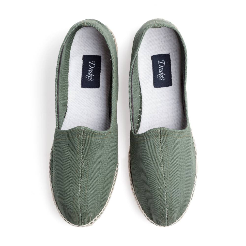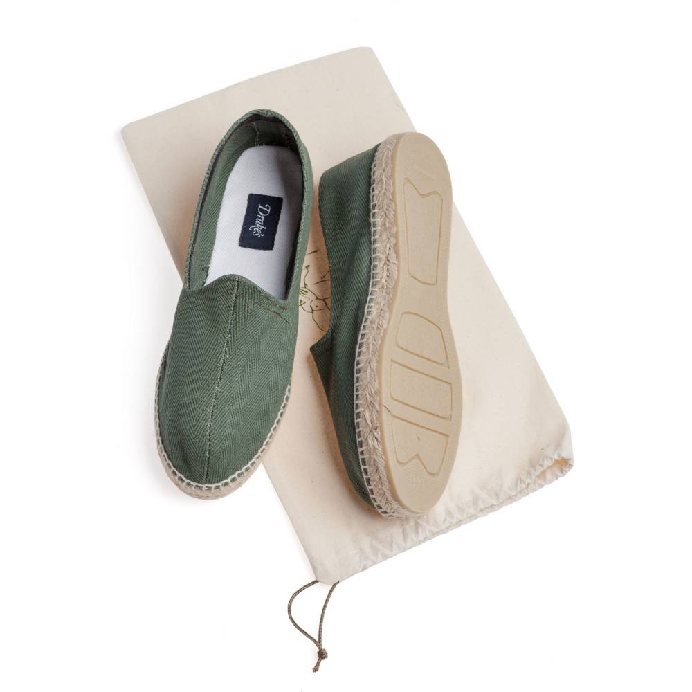 Мужские эспадрильи от английской марки Drake's созданы из качественных натуральных материалов. Верх выполнен из прочной холщовой ткани в ёлочку. Подошва состоит из нескольких слоёв джута - натурального волокнистого материала, используемого для производства мешков и канатов. Благодаря джуту обувь имеет высокую воздухопроницаемость и идеально подходит даже для самой жаркой погоды. От влаги и изнашивания джутовую подошву защищает тонкий слой износостойкой резины.