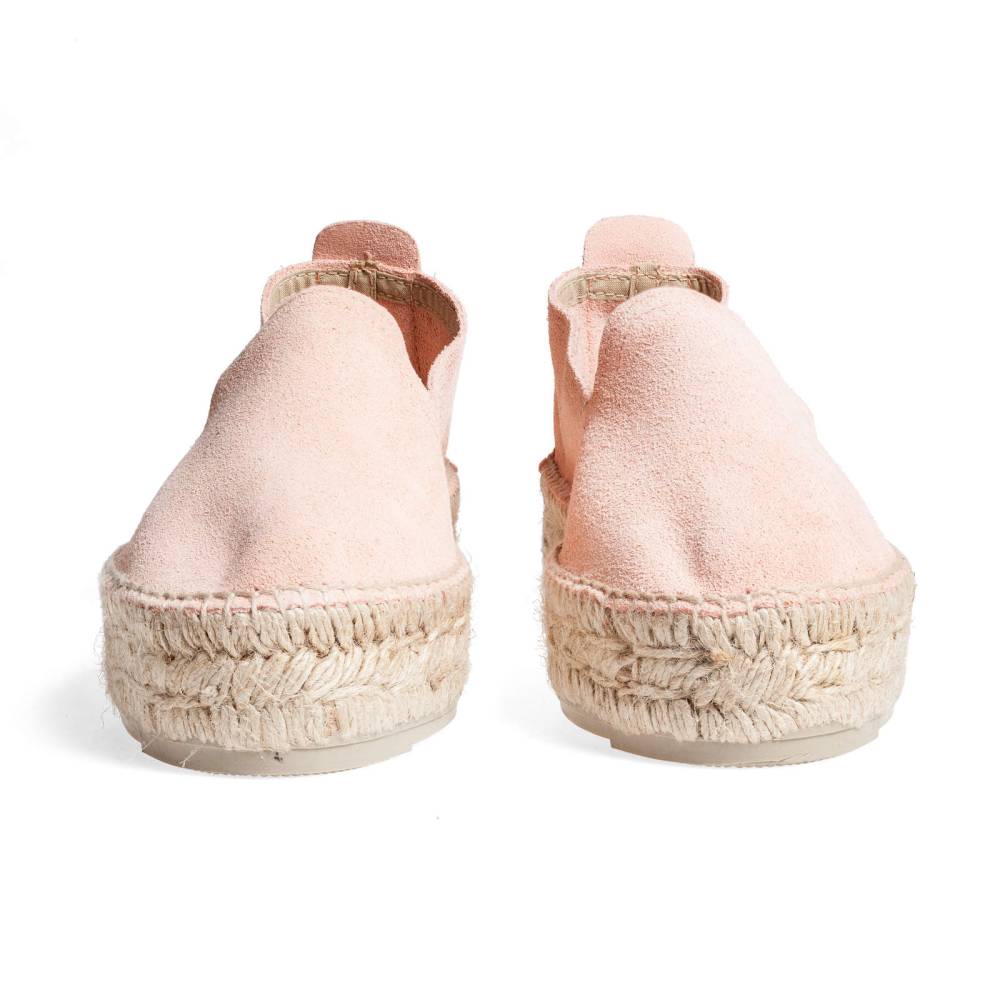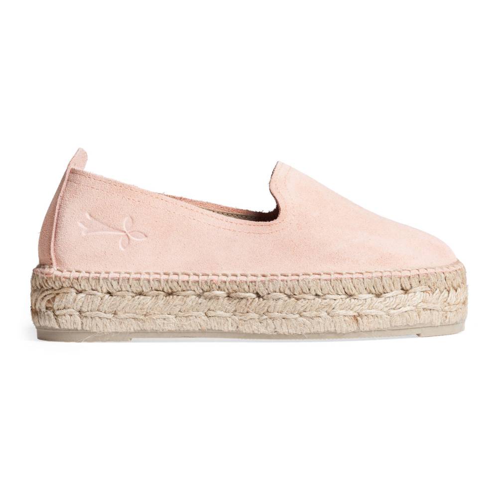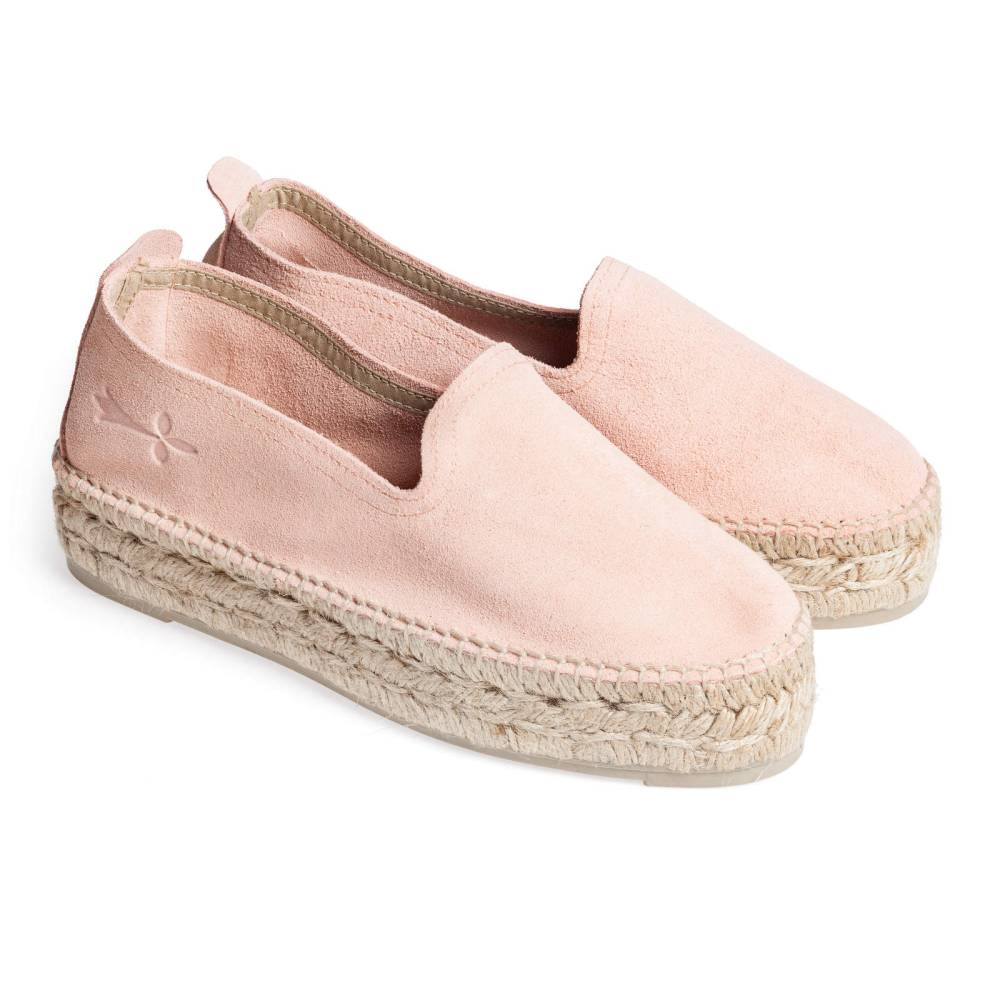 Женские эспадрильи Manebi созданы из качественных натуральных материалов. Верх выполнен из мягкой розовой замши. Подошва состоит из нескольких слоёв джута - натурального волокнистого материала, используемого для производства мешков и канатов. Благодаря джуту обувь имеет высокую воздухопроницаемость и идеально подходит даже для самой жаркой погоды. От влаги и изнашивания джутовую подошву защищает тонкий слой натурального каучука.