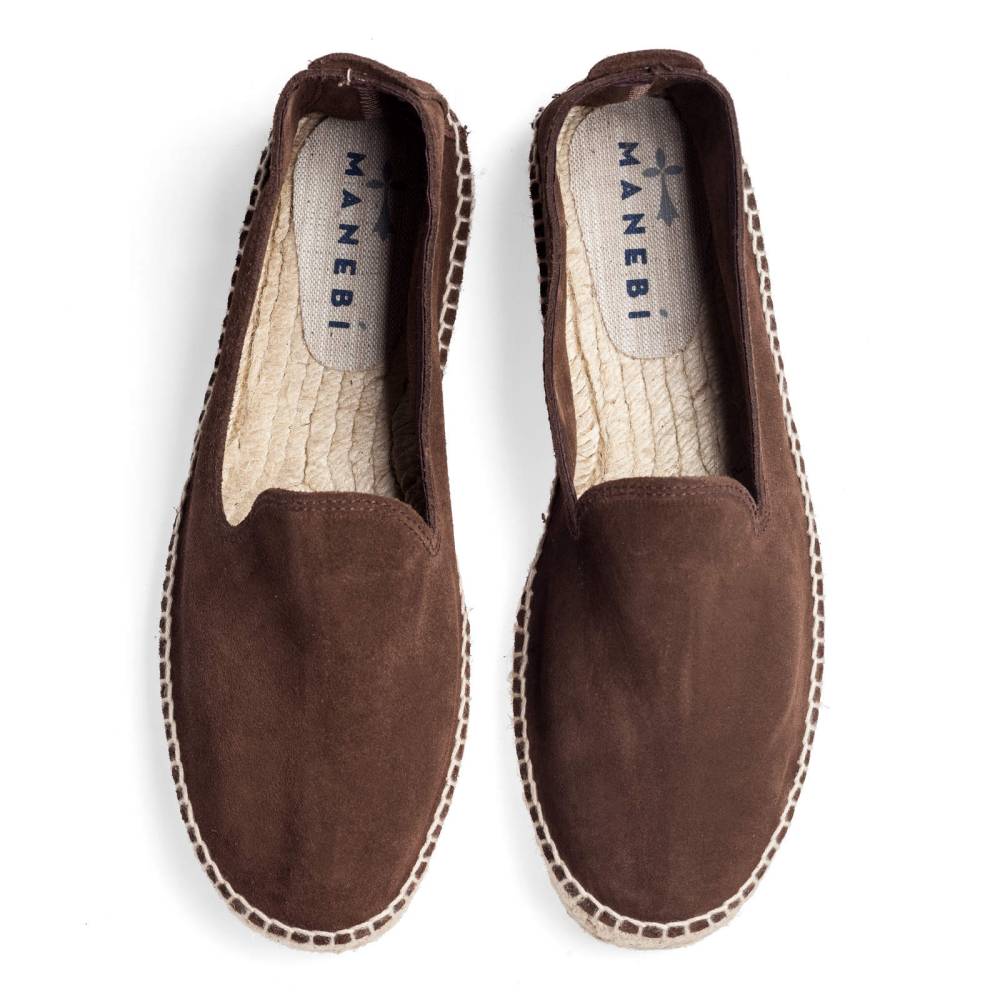 Мужские эспадрильи Manebi созданы из качественных натуральных материалов. Верх выполнен из мягкой коричневой замши. Подошва состоит из нескольких слоёв джута - натурального волокнистого материала, используемого для производства мешков и канатов. Благодаря джуту обувь имеет высокую воздухопроницаемость и идеально подходит даже для самой жаркой погоды. От влаги и изнашивания джутовую подошву защищает тонкий слой натурального каучука.