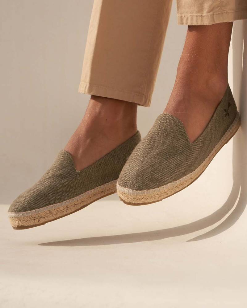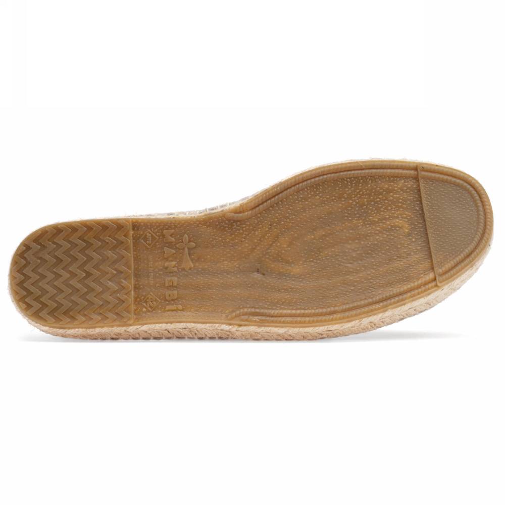 Мужские эспадрильи Manebi созданы из качественных натуральных материалов. Верх выполнен из прочного и плотного конопляного волокна тёмно-зелёного цвета. Подкладка из тонкой и мягкой микрофибры. Подошва состоит из нескольких слоёв джута - натурального волокнистого материала, используемого для производства мешков и канатов. Благодаря джуту обувь имеет высокую воздухопроницаемость и идеально подходит даже для самой жаркой погоды. От влаги и изнашивания джутовую подошву защищает тонкий слой натурального каучука снизу.