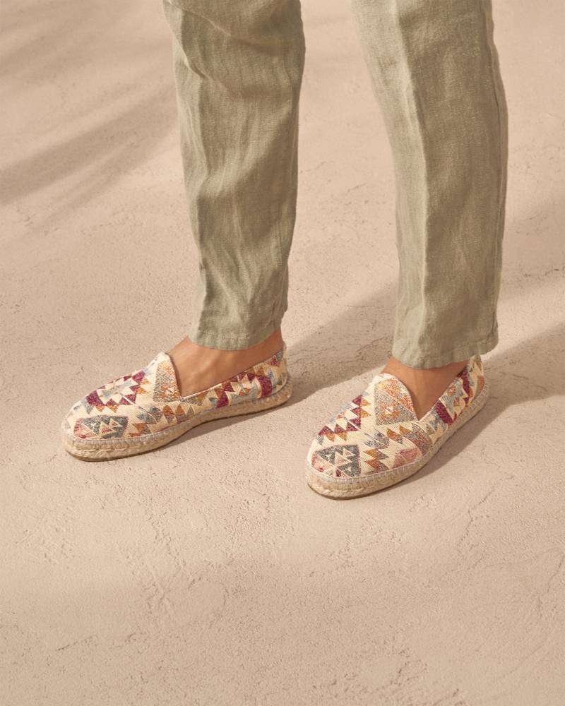 Мужские эспадрильи Manebi созданы из качественных натуральных материалов. Верх выполнен из уникального жаккарда с этническими узорами индейцев. Подкладка из тонкой и мягкой микрофибры. Подошва состоит из нескольких слоёв джута - натурального волокнистого материала, используемого для производства мешков и канатов. Благодаря джуту обувь имеет высокую воздухопроницаемость и идеально подходит даже для самой жаркой погоды. От влаги и изнашивания джутовую подошву защищает тонкий слой натурального каучука снизу.