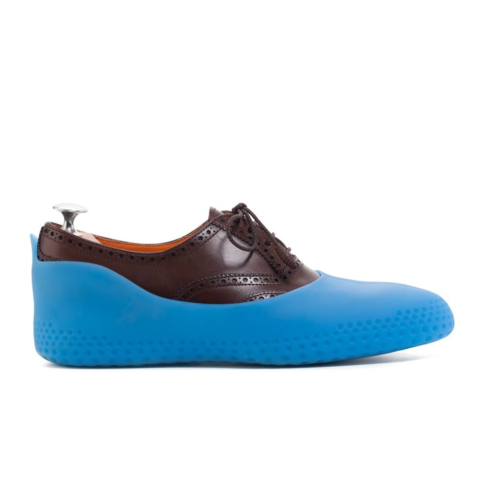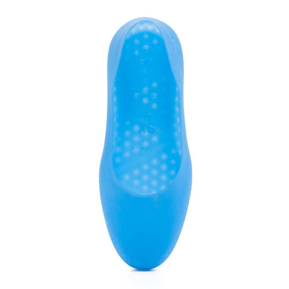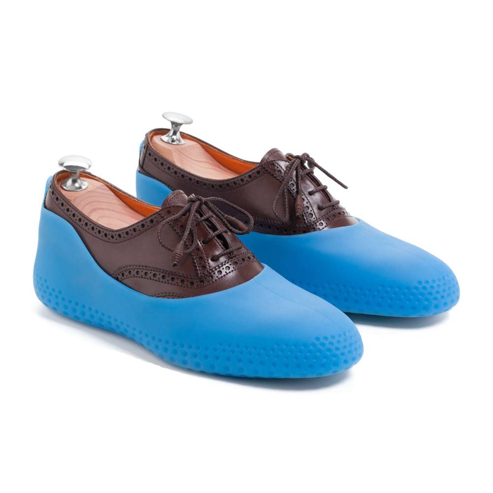 Женские галоши французской марки M & Go выполнены из прочной термопластичной резины голубого цвета. Благодаря протектору на подошве галоши обеспечивают превосходное сцепление с поверхностью и предотвращают скольжение. Их удобно брать в путешествия и в командировки – к каждой паре прилагается водонепроницаемый компактный кейс на молнии. Вес полупары составляет всего 160 г. Каждая полупара подходит как на левую, так и правую ногу.