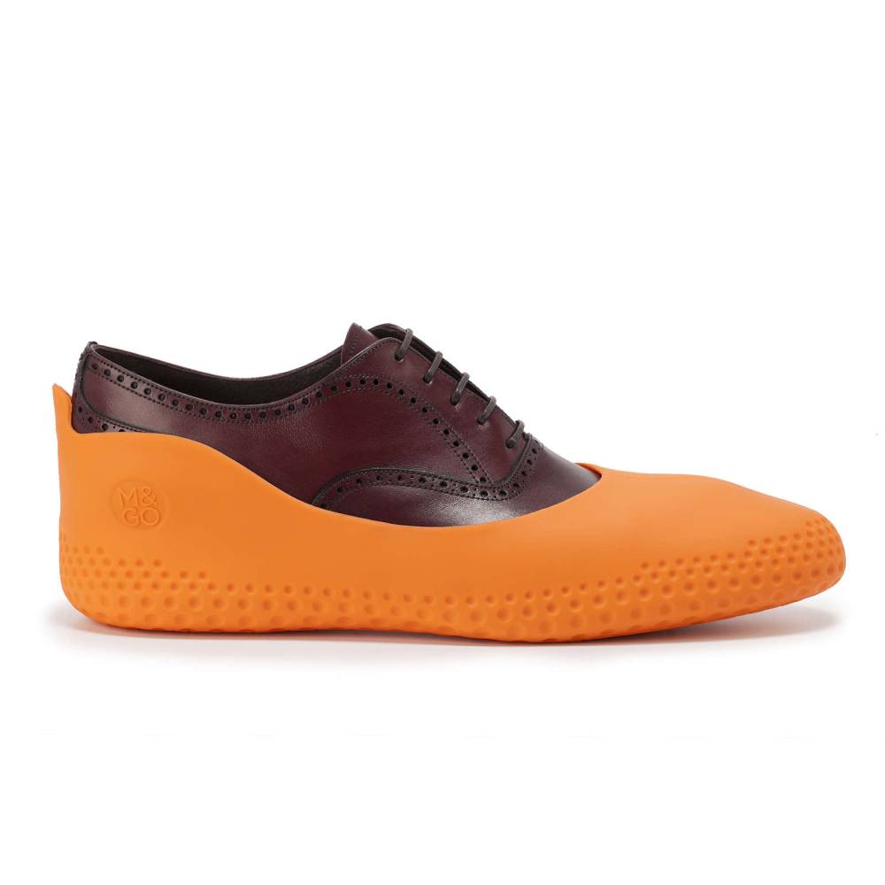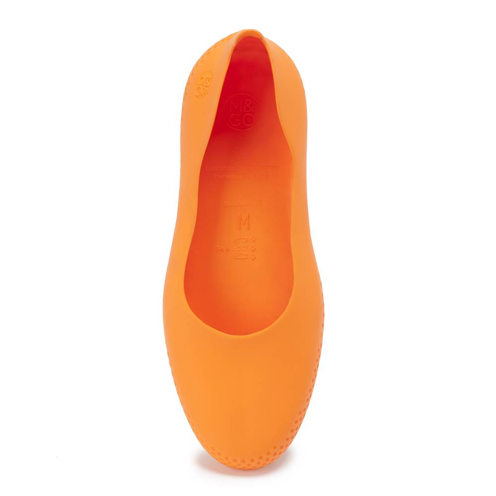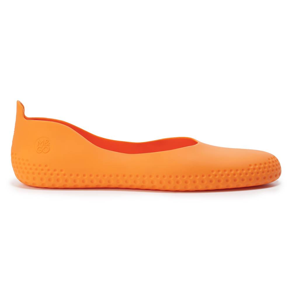 Галоши французской марки M & Go выполнены из прочной термопластичной резины оранжевого цвета. Благодаря протектору на подошве галоши обеспечивают превосходное сцепление с поверхностью и предотвращают скольжение. Их удобно брать в путешествия и в командировки – к каждой паре прилагается водонепроницаемый компактный кейс на молнии. Вес полупары составляет всего 160 г. Каждая полупара подходит как на левую, так и правую ногу.