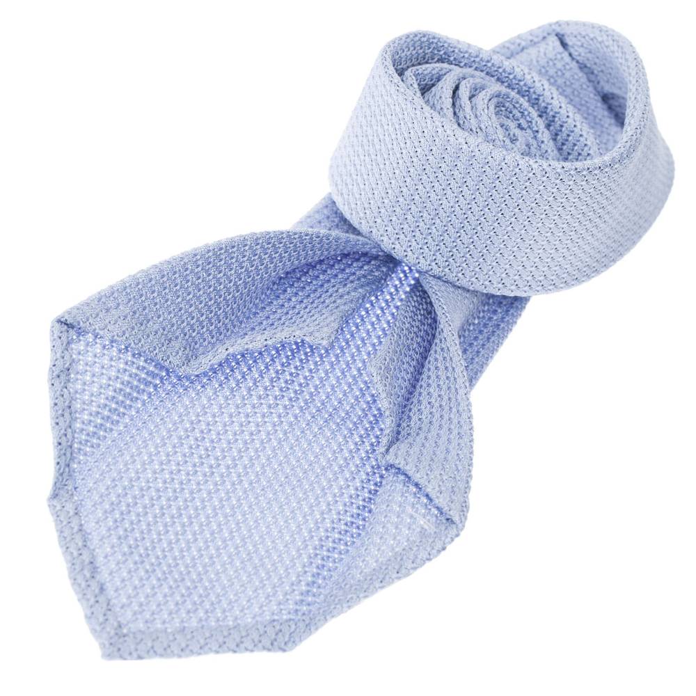 Тонкий летний галстук Petronius голубого цвета выполнен из высококачественной шёлковой ткани фактурного плетения. Модель является истинным шедевром галстучного ремесла. При создании галстука использовался один отрезок плетёного шёлка, который принял окончательную форму после пяти сложений! Все операции: от выкройки до окончательной стяжки по центру, выполнены руками нескольких ремесленников в мастерской Petronius в Милане. Больше 80 лет в этом семейном ателье занимаются пошивом роскошных аксессуаров из отборных натуральных тканей. Продукция Petronius представлена в старейших бутиках и универмагах мира, среди которых Barney's и Bergdorf Goodman в Нью-Йорке.
